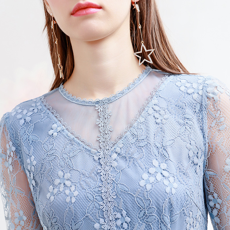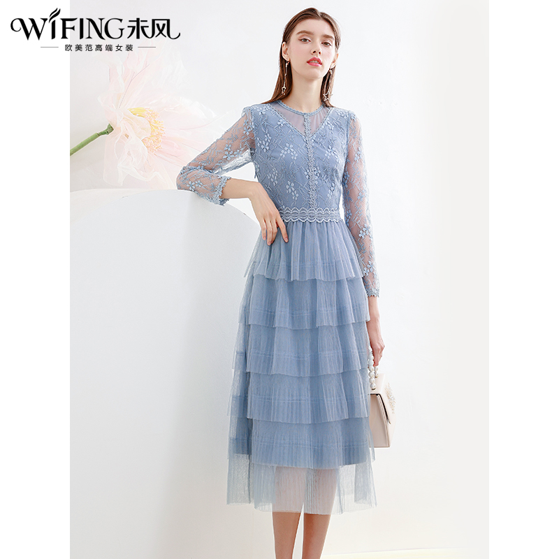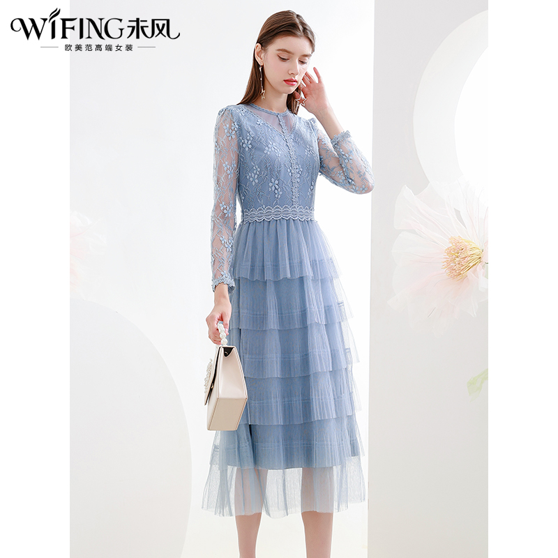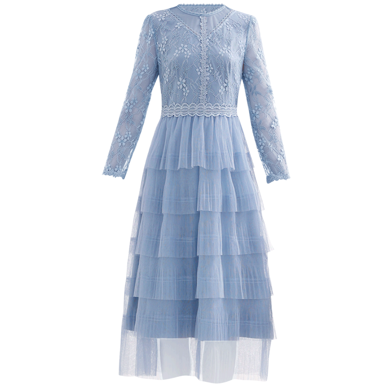 未风蓝色蕾丝网纱连衣裙女秋2025秋装新款女装气质名媛显瘦蛋糕裙
