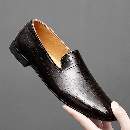 尖头休闲男皮鞋2025新款轻便软低真皮小码时尚潮流一脚蹬豆豆鞋男