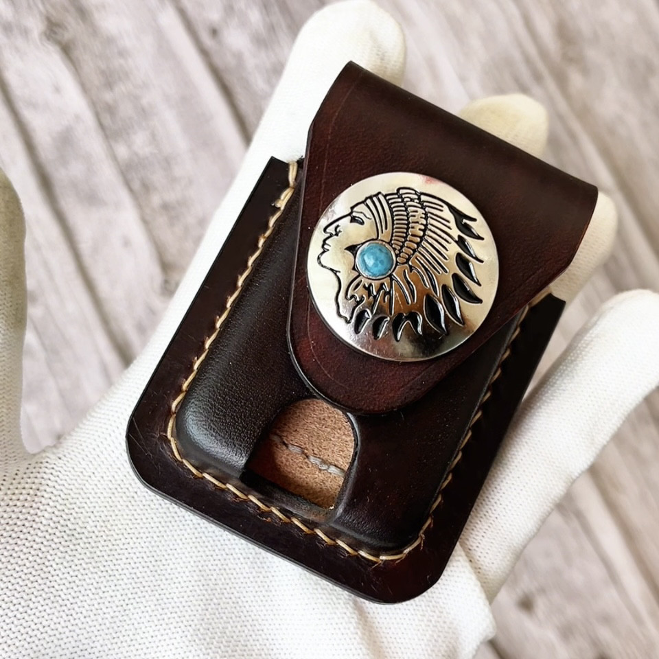 手工皮具适用Zippo打火机皮套加厚头层植鞣牛皮真皮磁吸扣挂腰