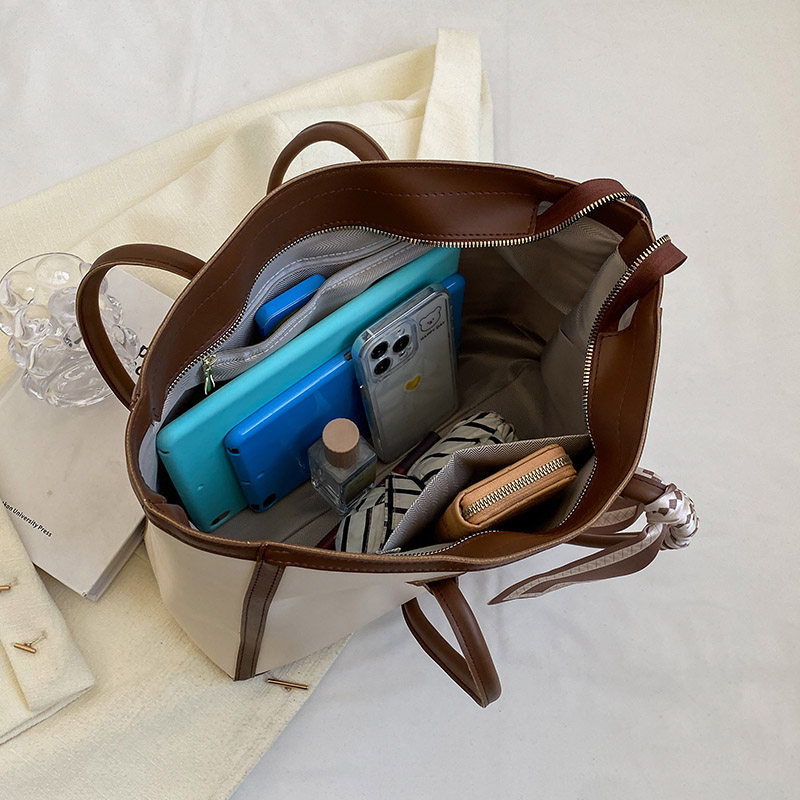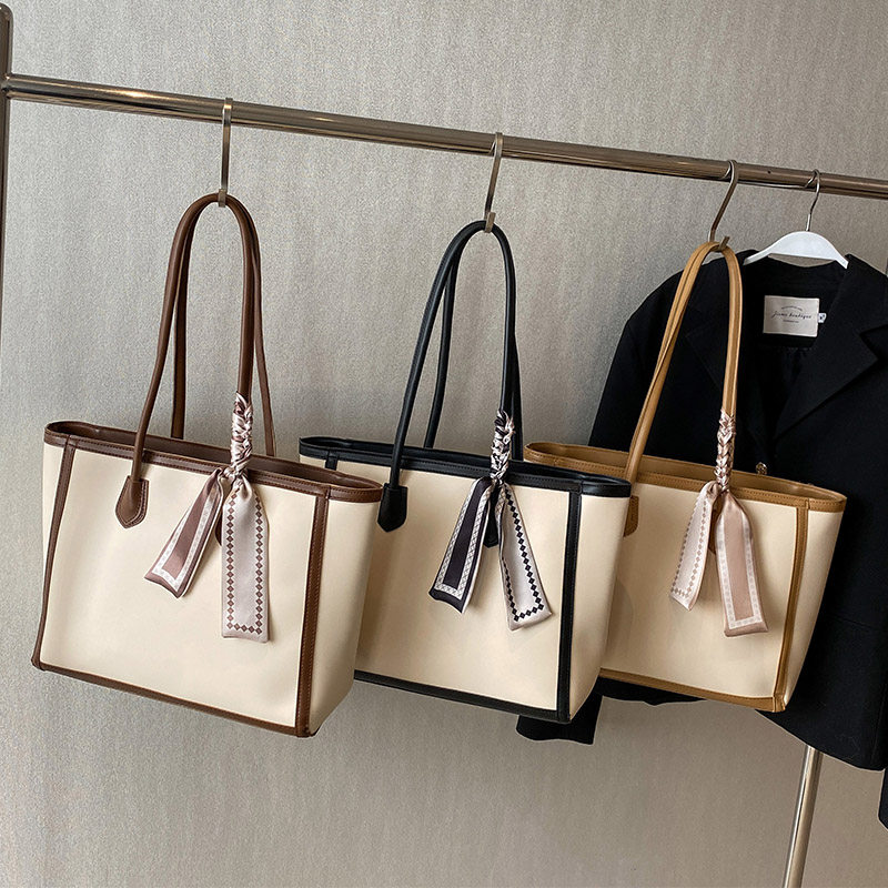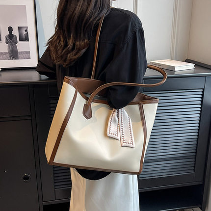 撞色大容量包包女2025新款潮夏购物袋大学生上课单肩通勤包托特包