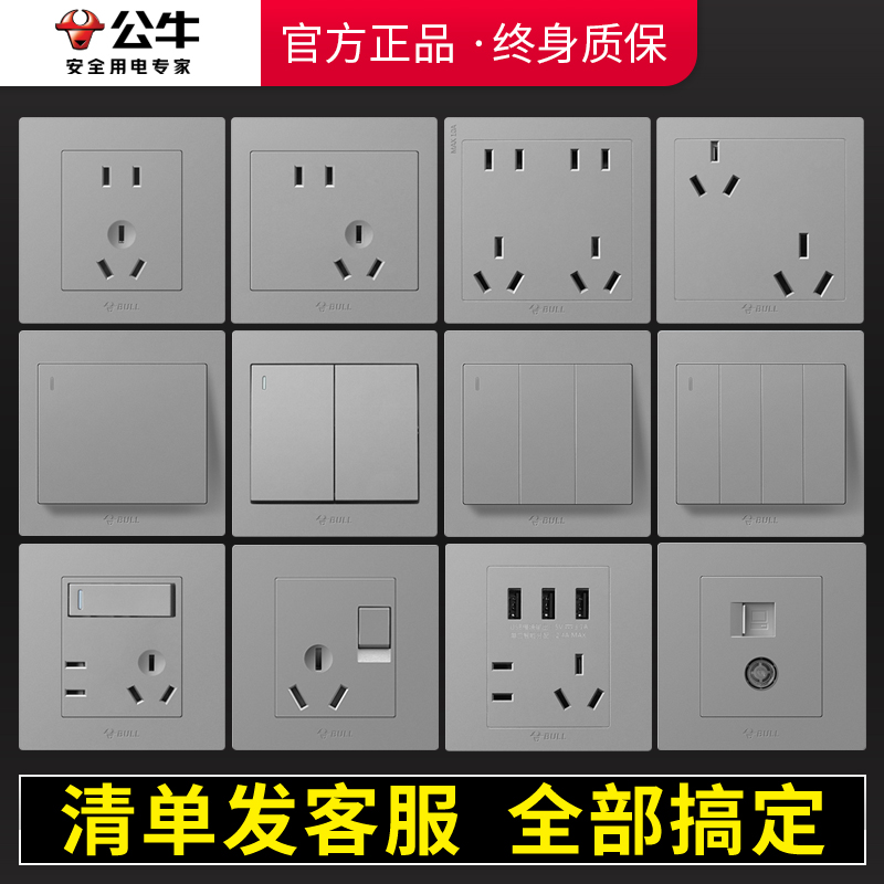 公牛开关插座面板旗舰86型墙壁暗装一开五孔带USB空调16a家用G31