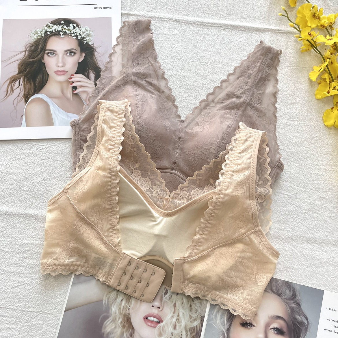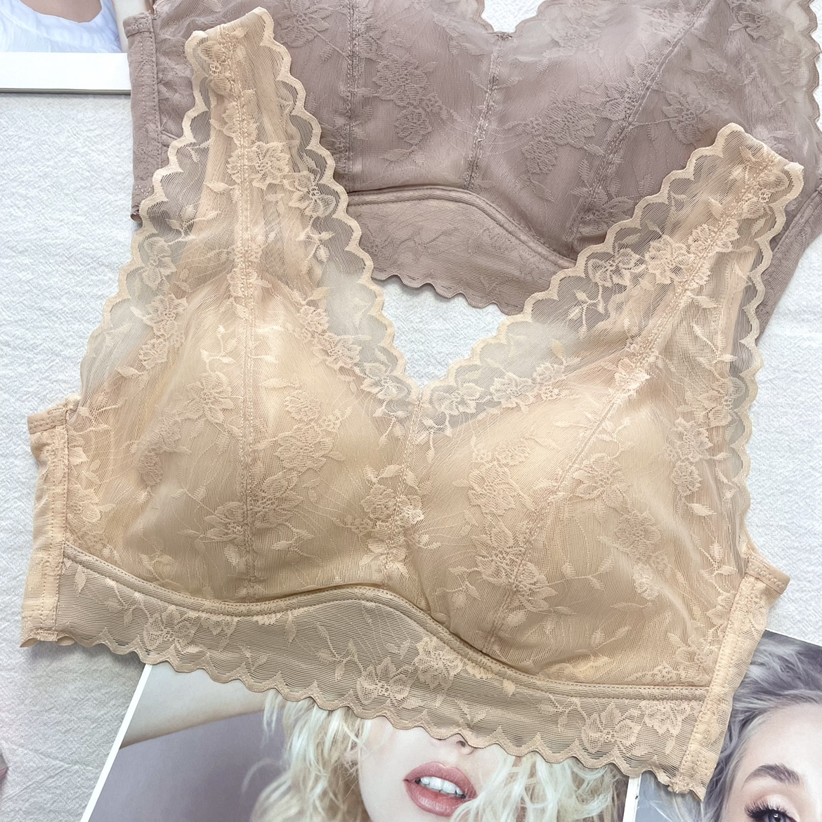 蚕丝蛋白蕾丝美背内衣5511大胸显小聚拢收副乳宽肩带无钢圈文胸罩