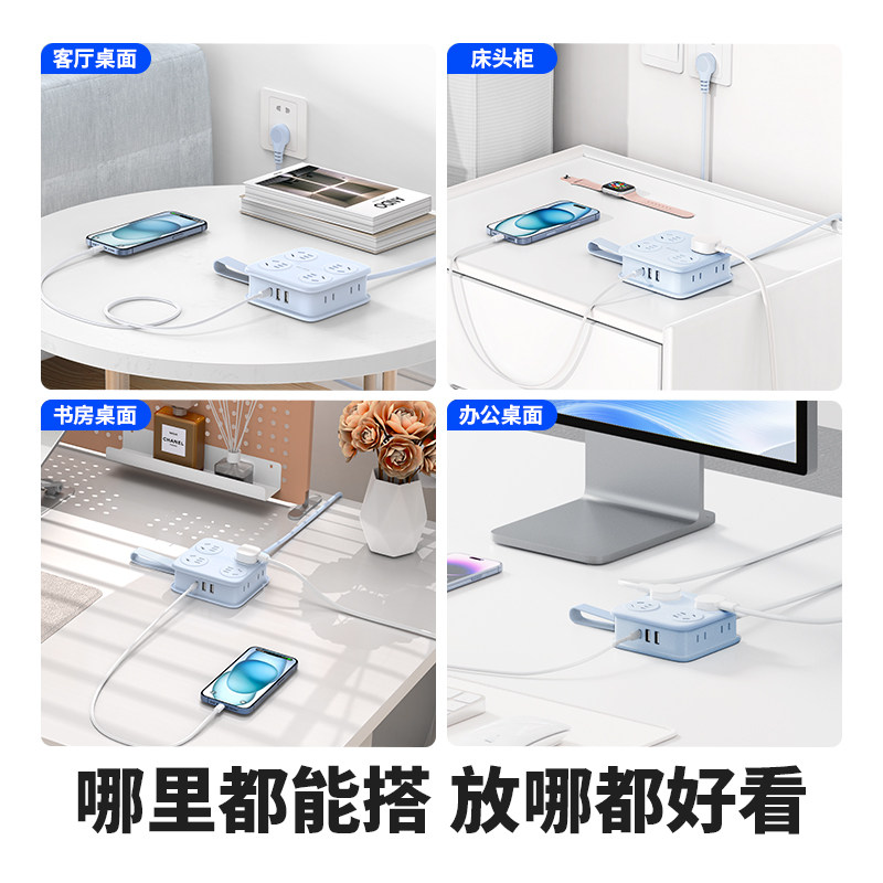 奥睿科绕线方砖AP3插排插座桌面USB家用接线板办公宿舍排插插线板