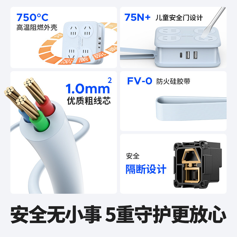 奥睿科USB接线板可收纳美学插排