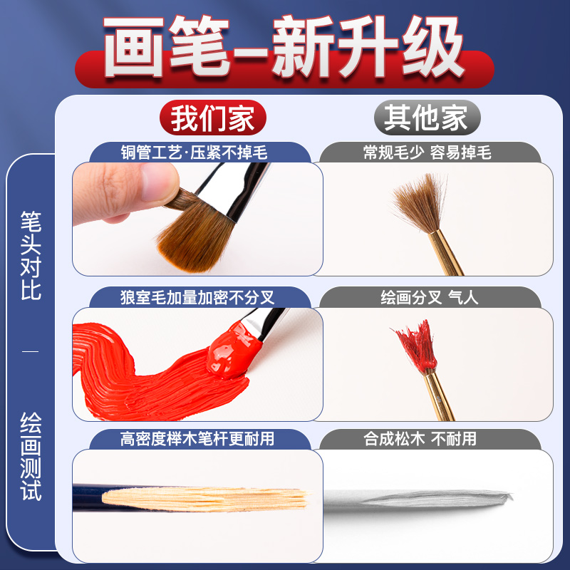 左绘狼毫水粉笔油画笔丙烯笔画笔初学者水彩笔画画美术绘画水彩勾线笔画笔套装美术生考试颜料刷子排笔颜料笔
