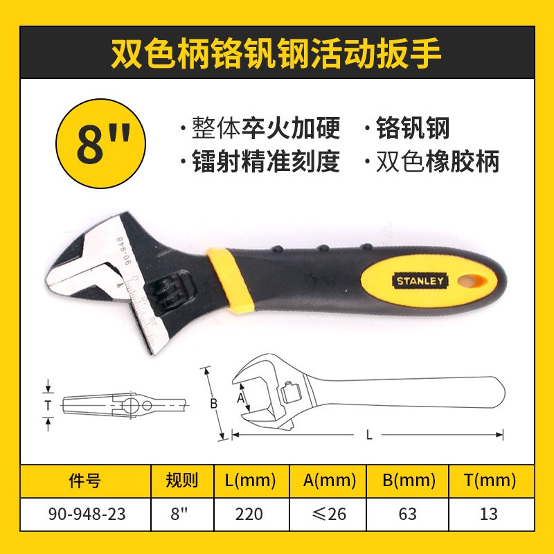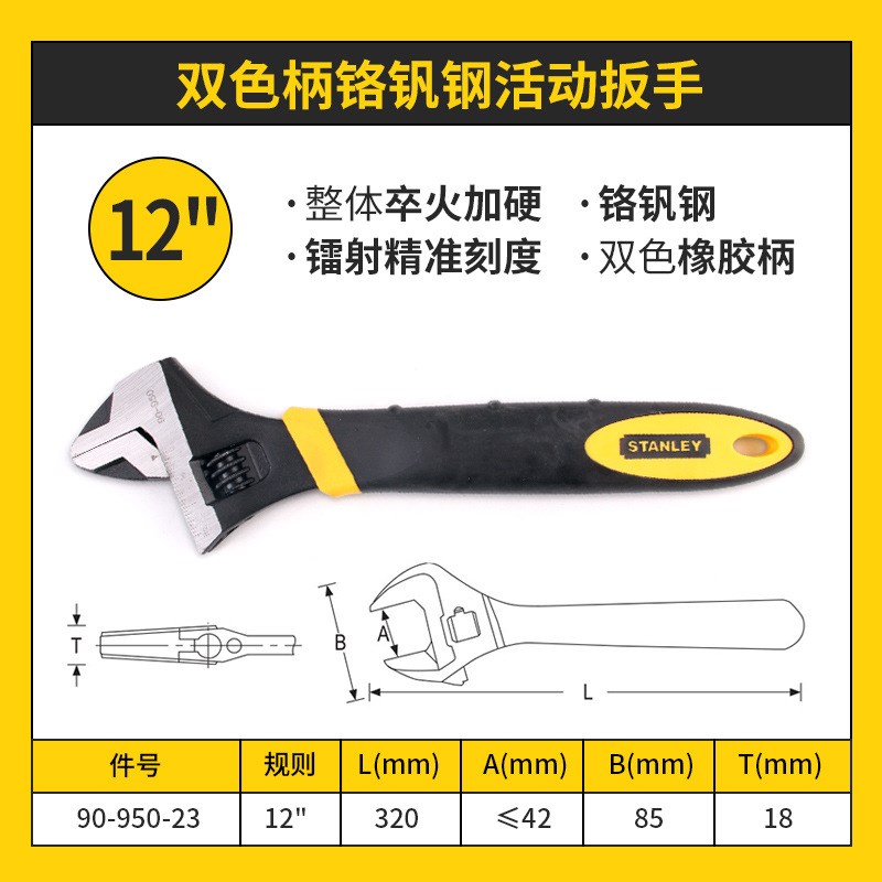 史丹利活动扳手橡塑手柄万能大开口扳子快速活口扳手管钳多功能