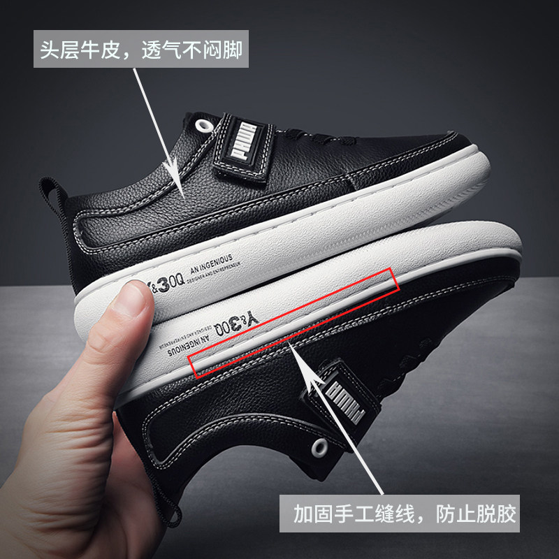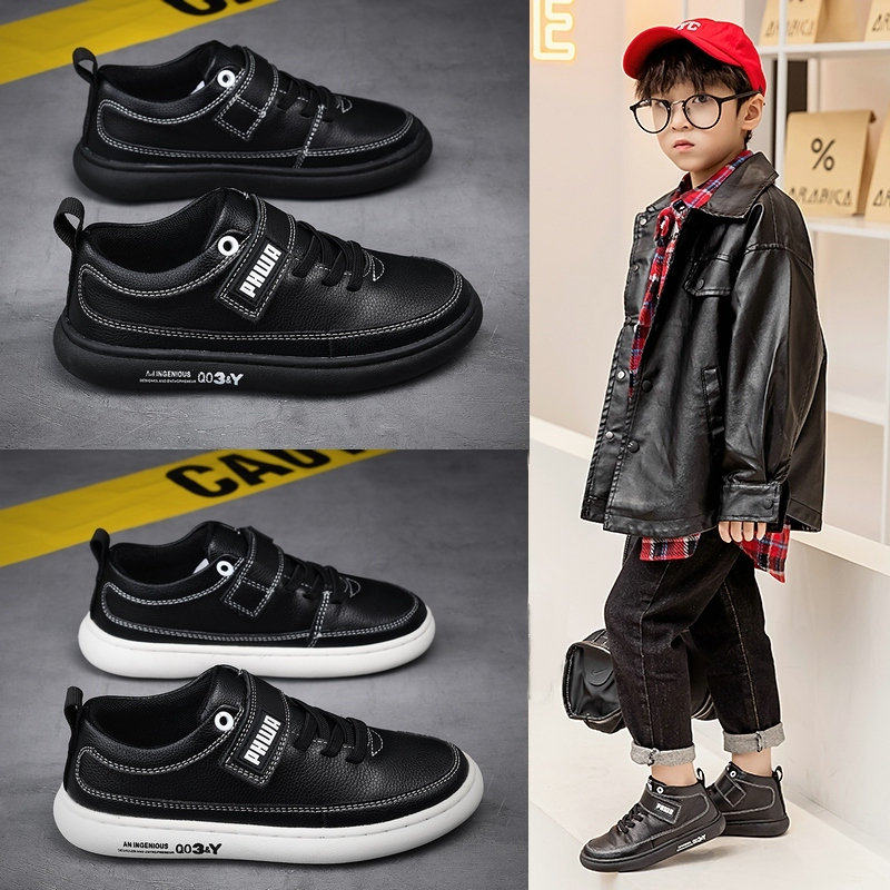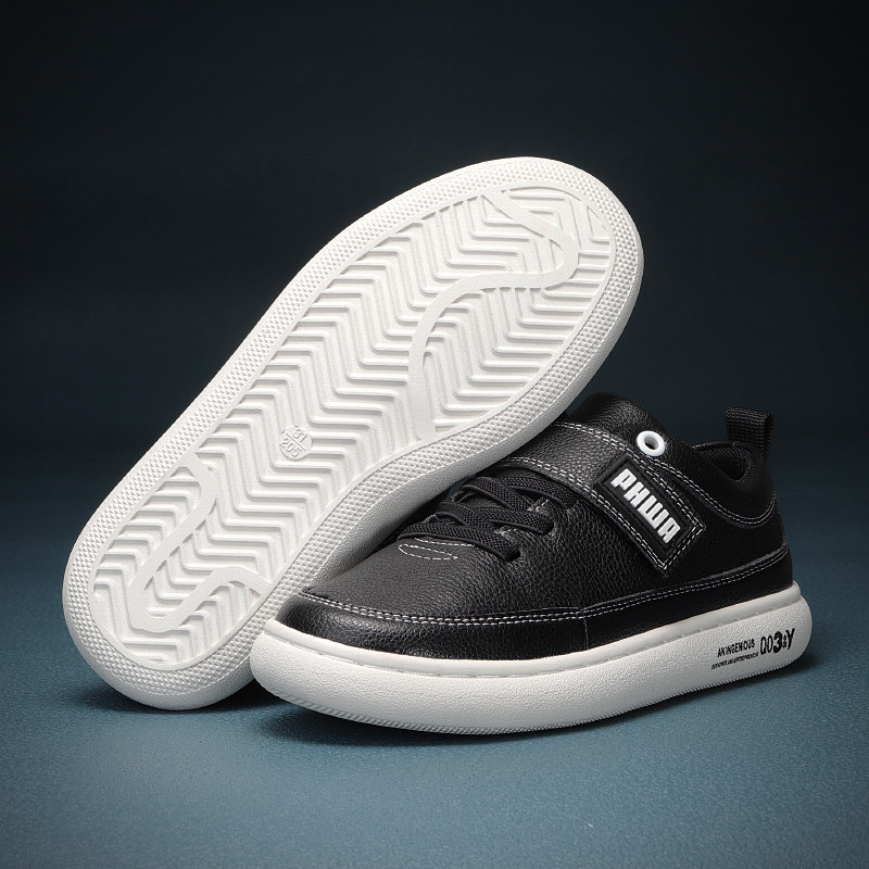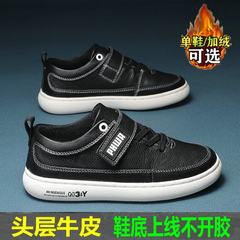 男童鞋子秋冬加绒儿童真皮运动鞋小学生英伦黑色皮鞋头层牛皮板鞋