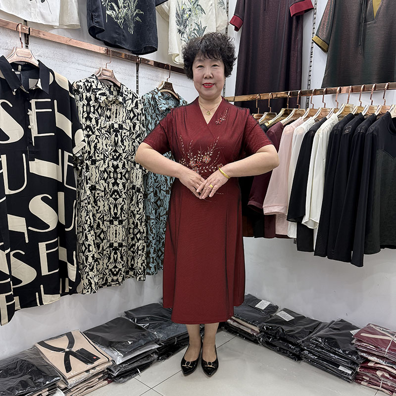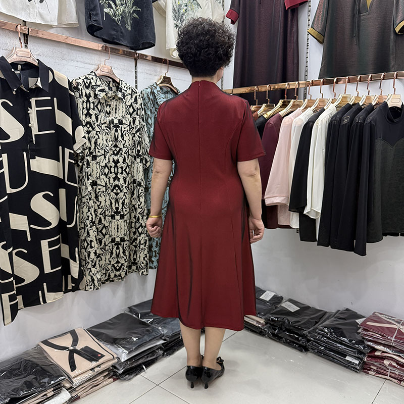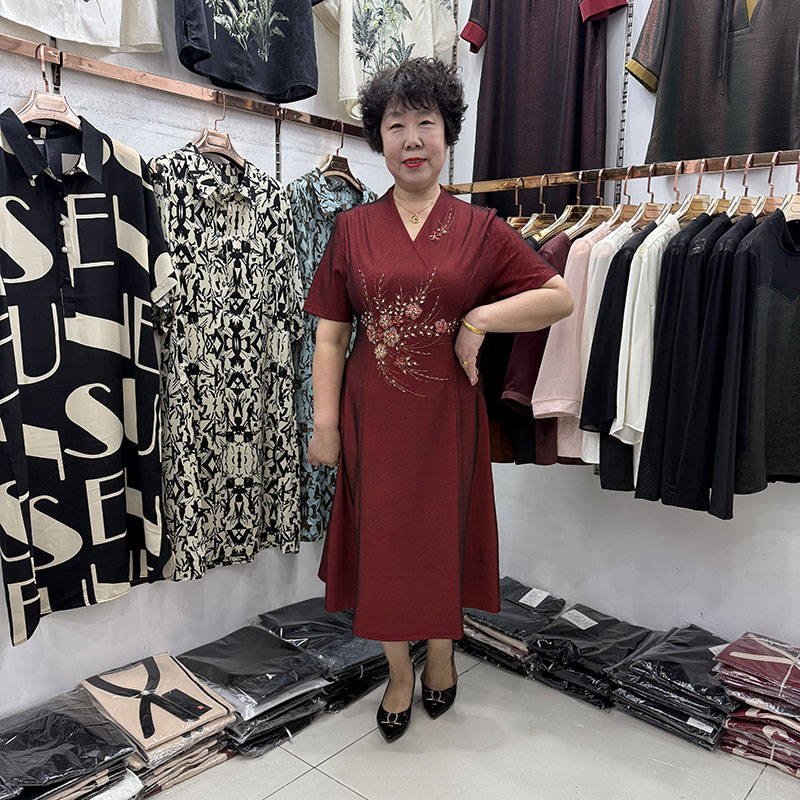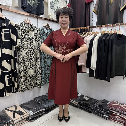 喜婆婆婚宴高档气质V领气质连衣裙短袖夏小个子妈妈礼服裙子大码
