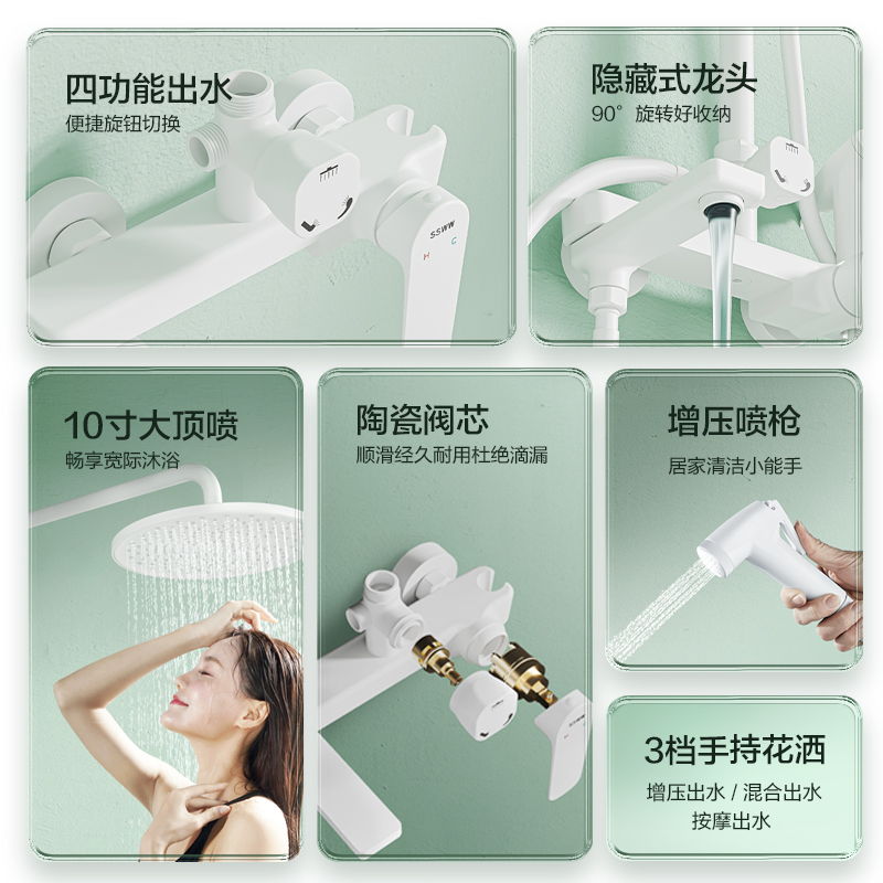 【国补立减】浪鲸卫浴白色淋浴花洒套装四功能带喷枪家用冷热可