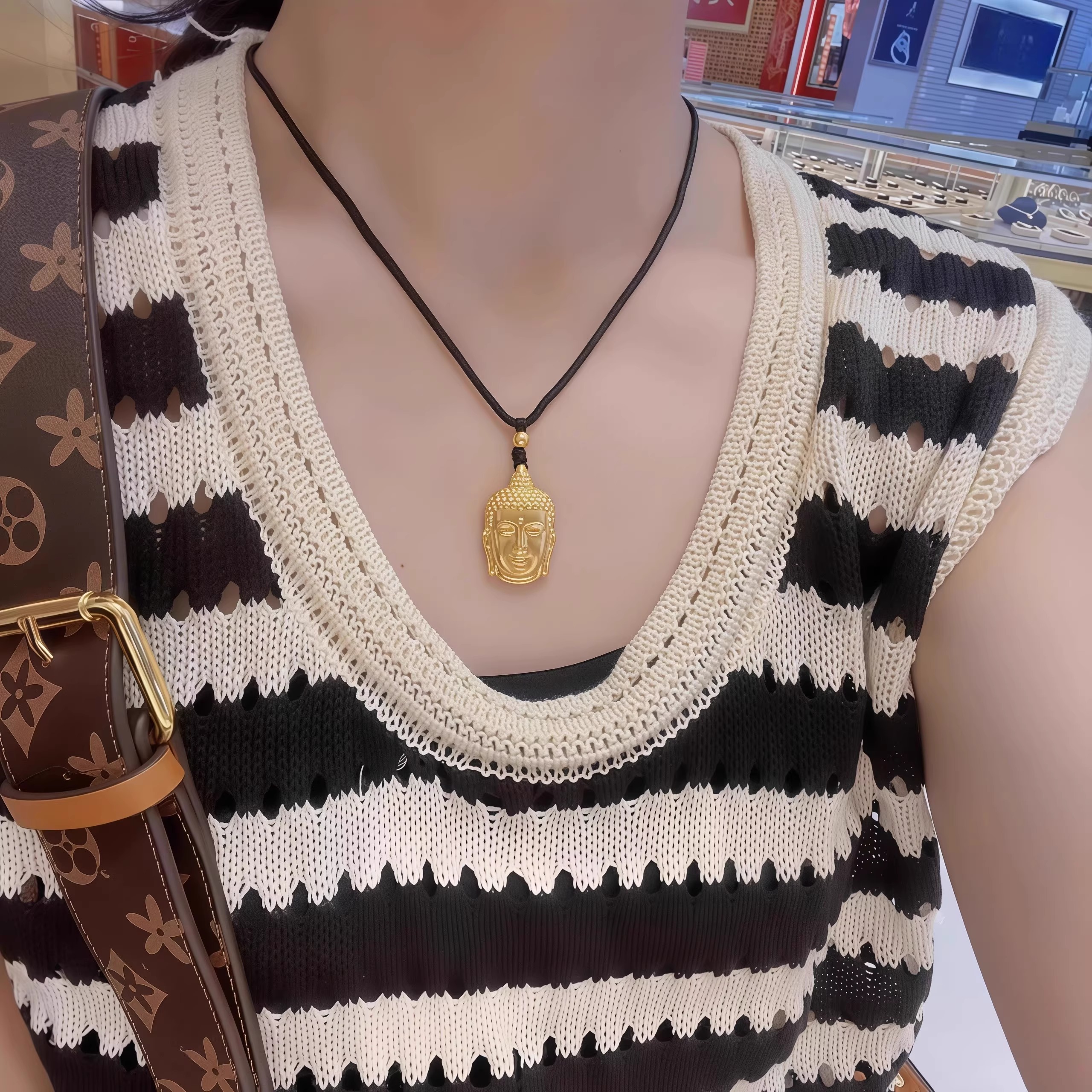 黄金包银佛头吊坠实心如来佛像永保平安挂坠项链锁骨链送男女礼物