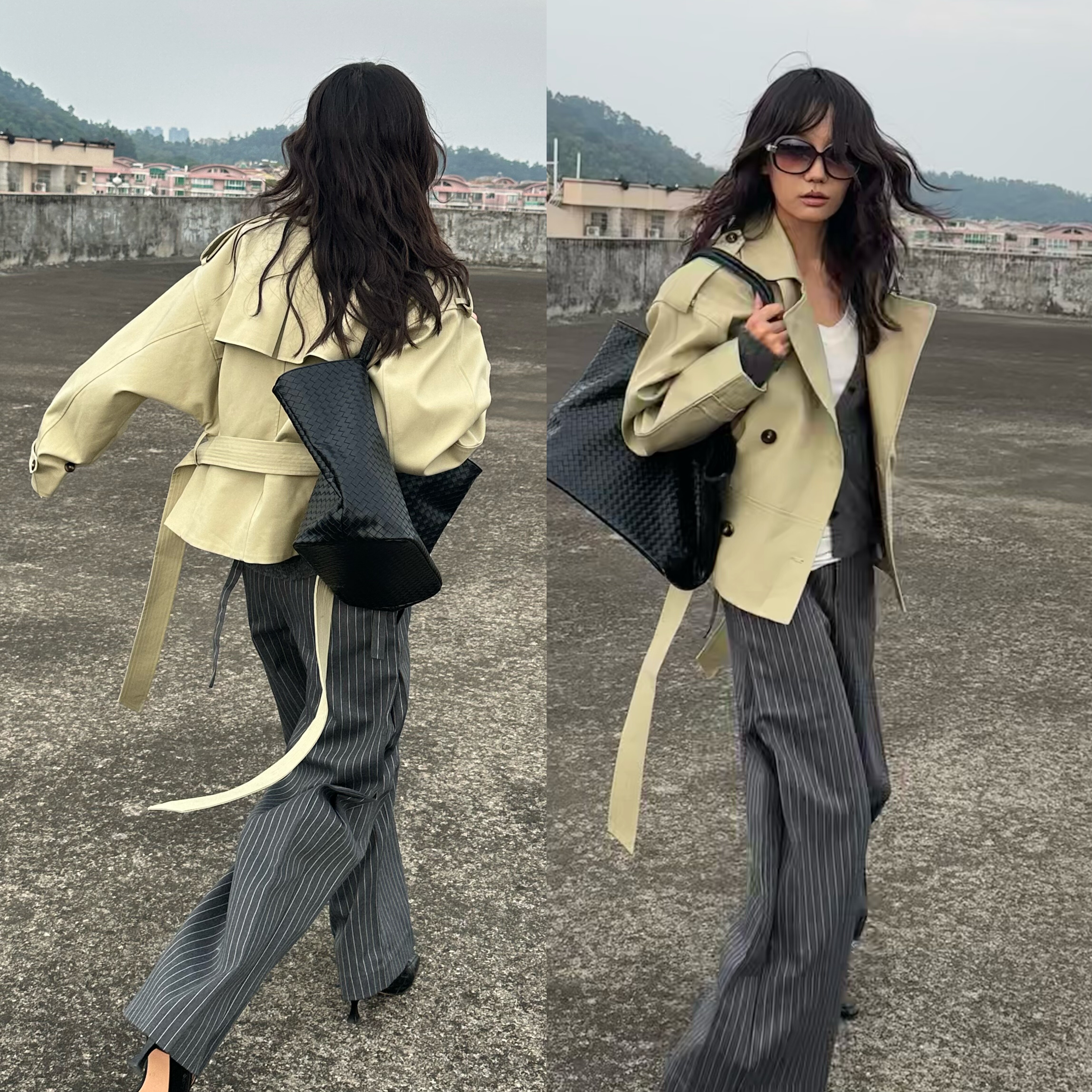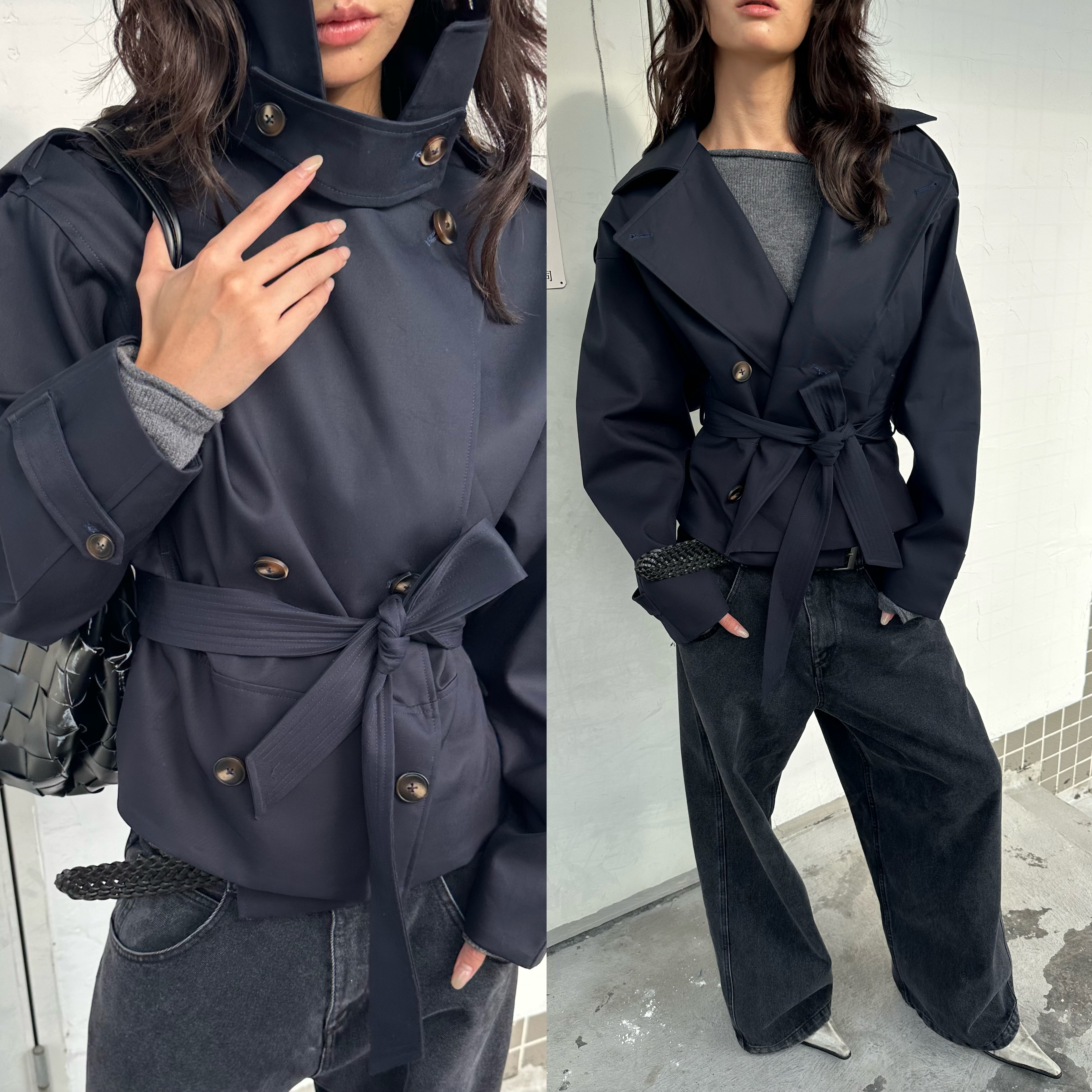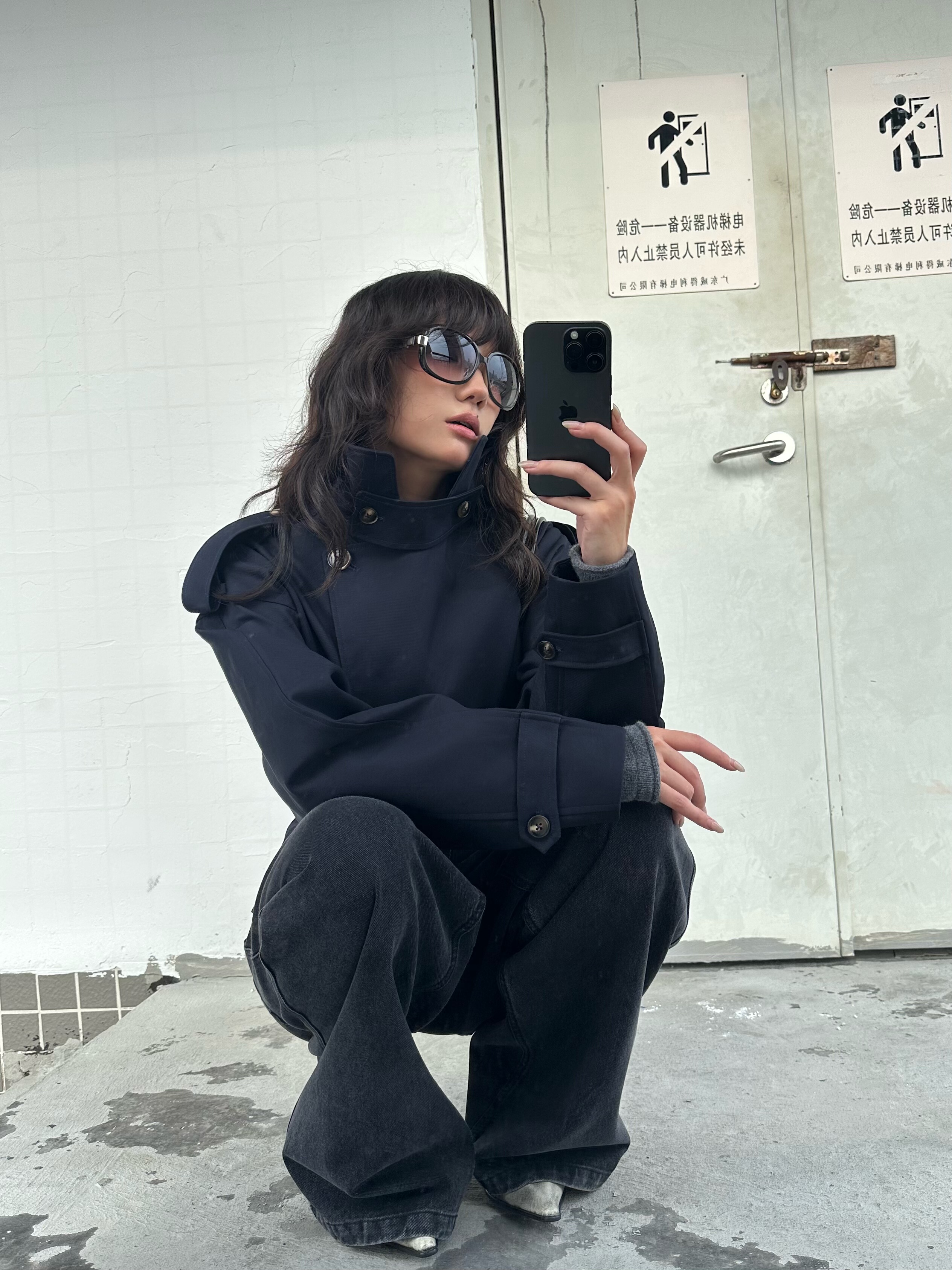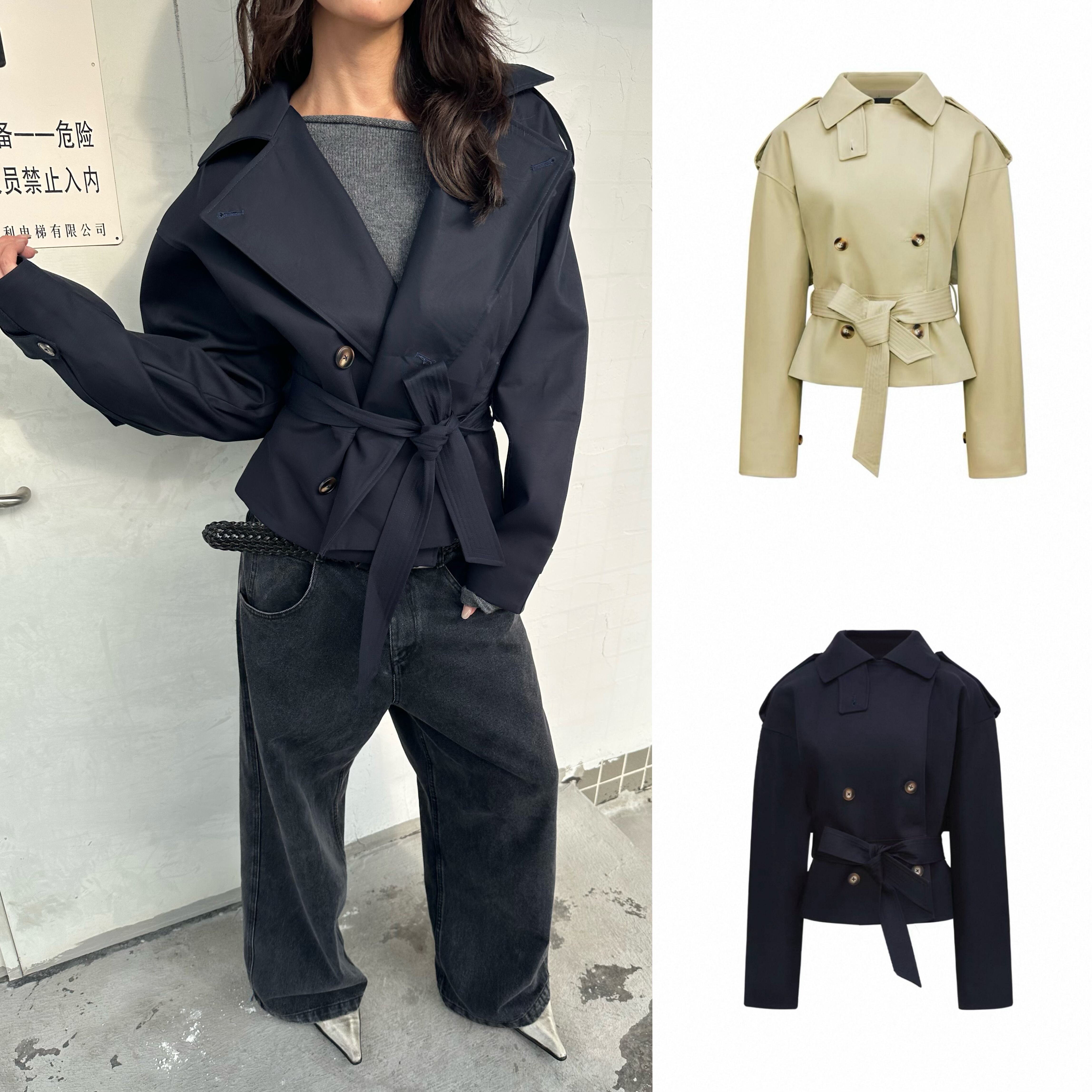 现货 还原 WEEEECHAN次日早晨 双排扣短款风衣夹克 浅卡其/藏蓝