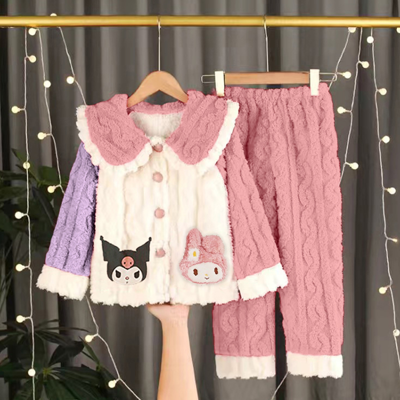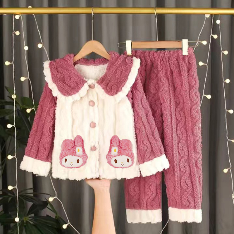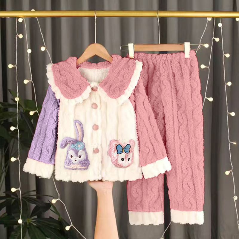 儿童珊瑚绒睡衣女童秋冬季法兰绒加厚款中大童女孩卡通家居服套装
