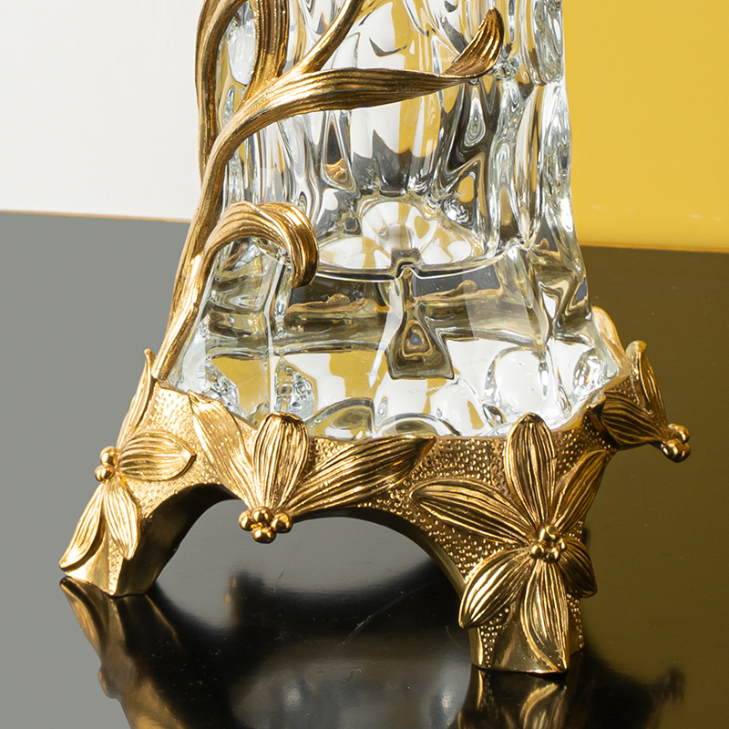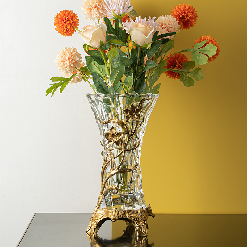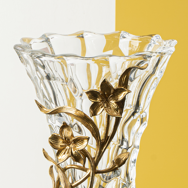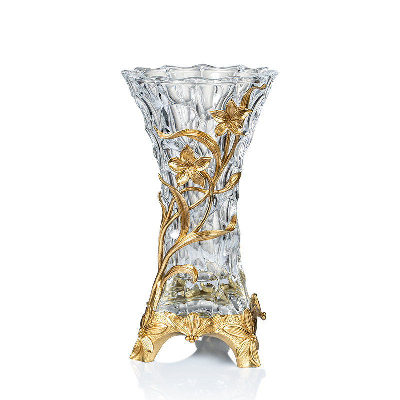 欧式水晶玻璃镶铜花瓶摆件客厅插花花瓶 美式高档奢华玄关摆设品