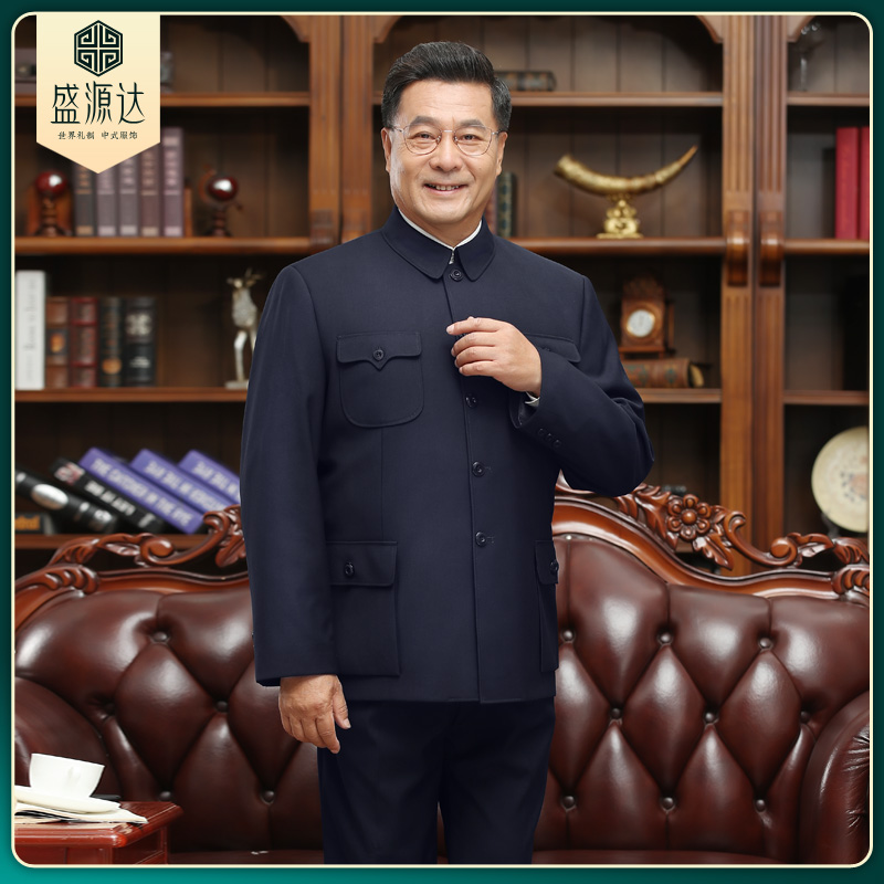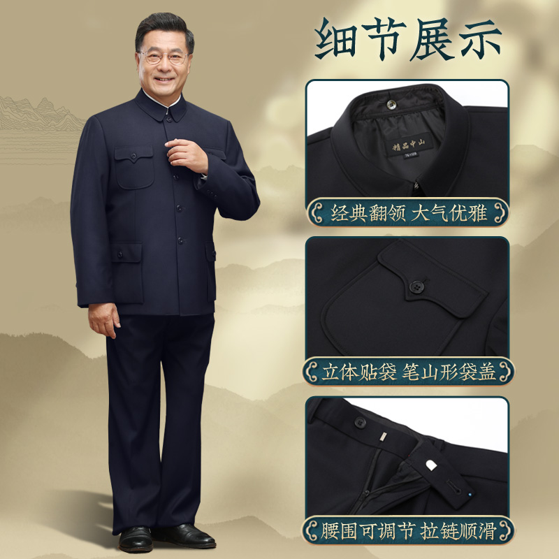 中老年人中山装男爸爸装套装中山服爷爷冬装加绒宽松国服男装外套