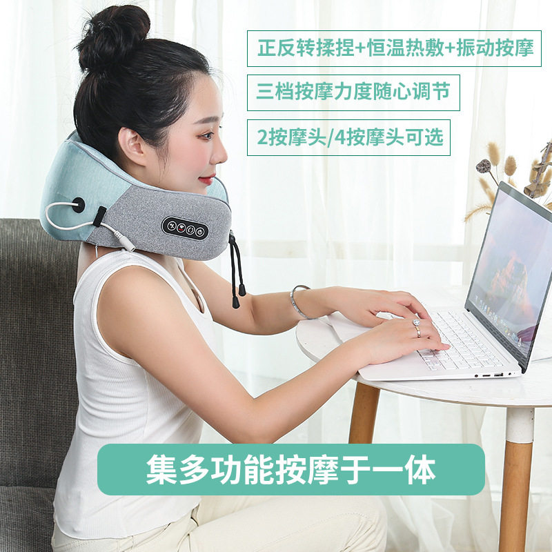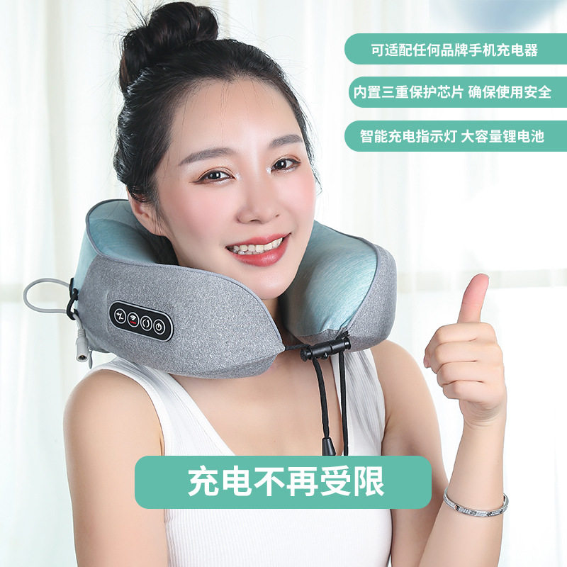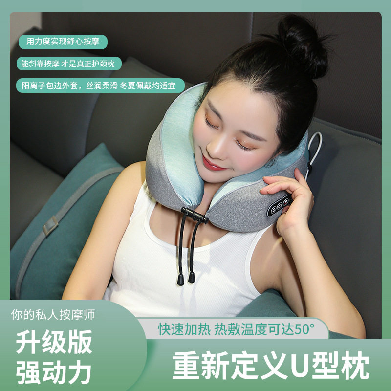 新款强动力U型按摩枕护颈枕颈椎按摩器便携式旅行枕午休枕爱舒达