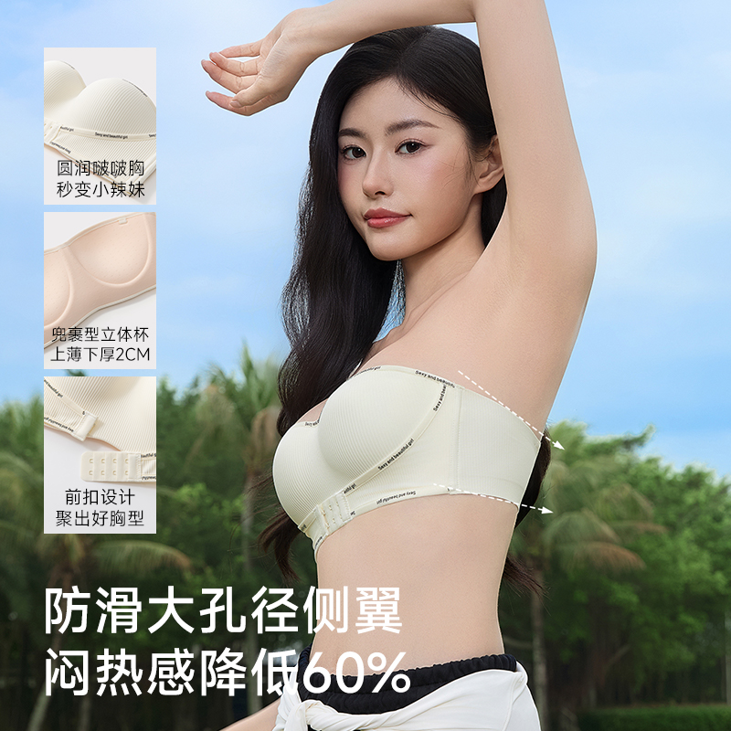 猫人无肩带内衣女小胸聚拢前扣防滑2025夏季新款美背抹胸无痕文胸