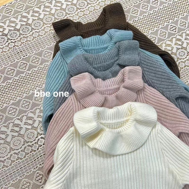 2025超软糯巨百搭秋冬女宝打底针织花边娃娃领毛衣白色粉蓝咖纯色