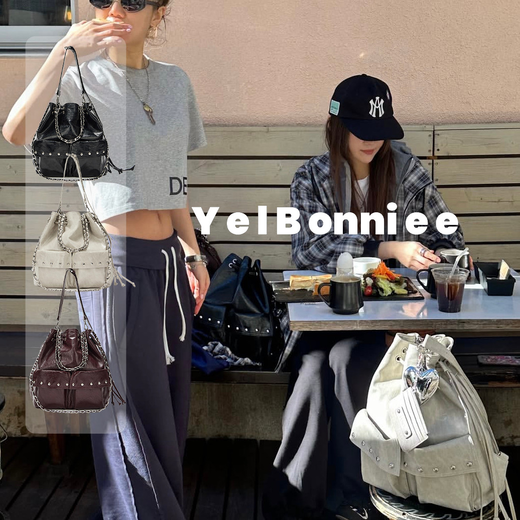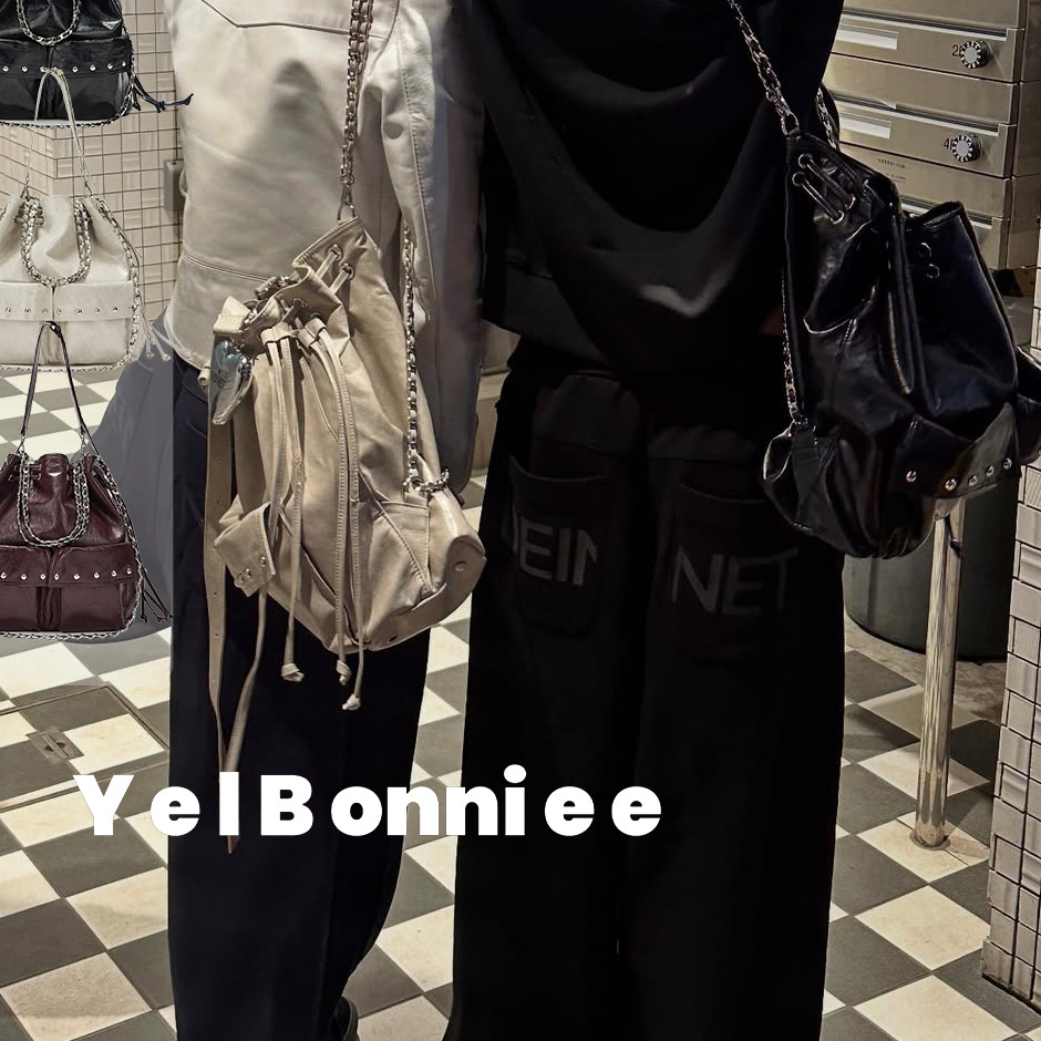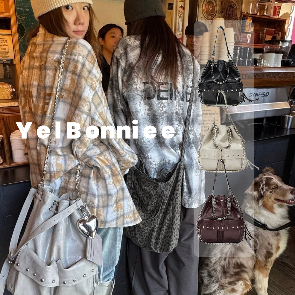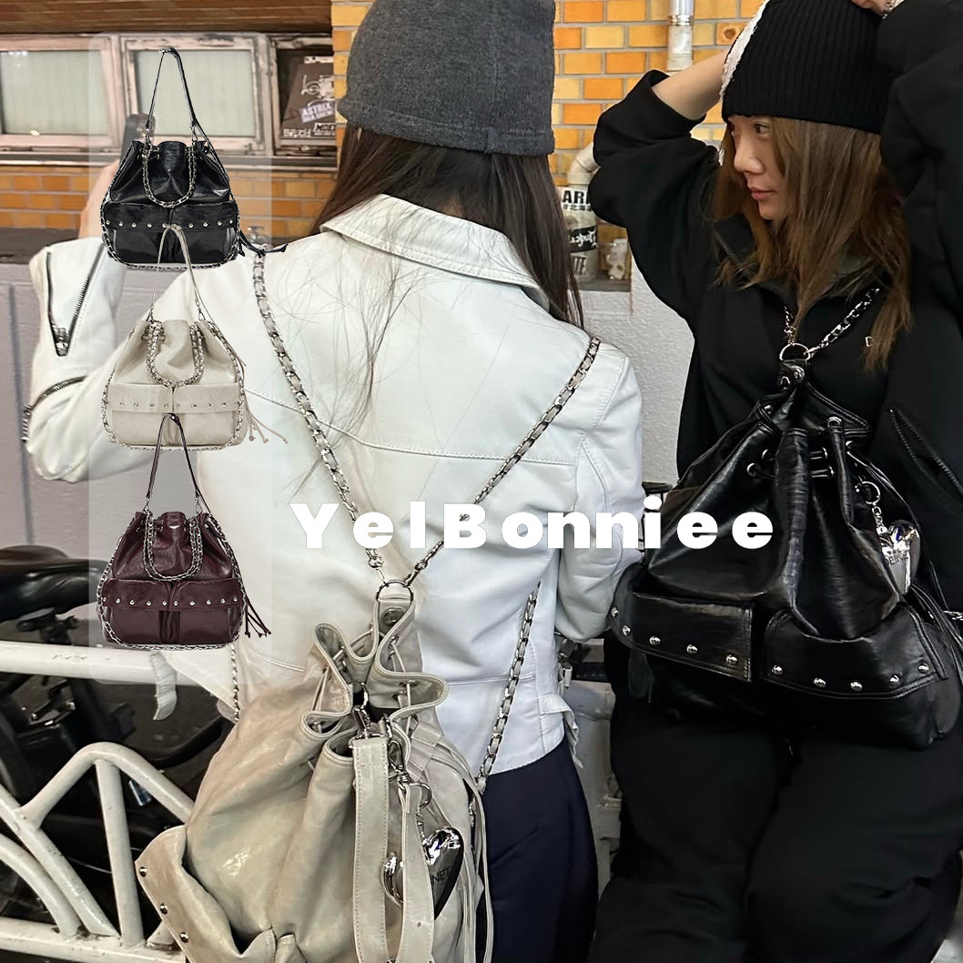 野啵妮 韩国小众Deinet抽绳链条双肩包水桶大容量单肩斜挎铆钉包