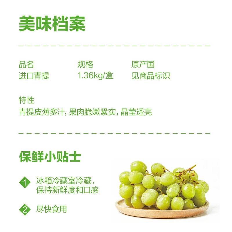 山姆会员超市代购 秘鲁无籽进口青提1.36kg 脆甜新鲜水果提子顺丰