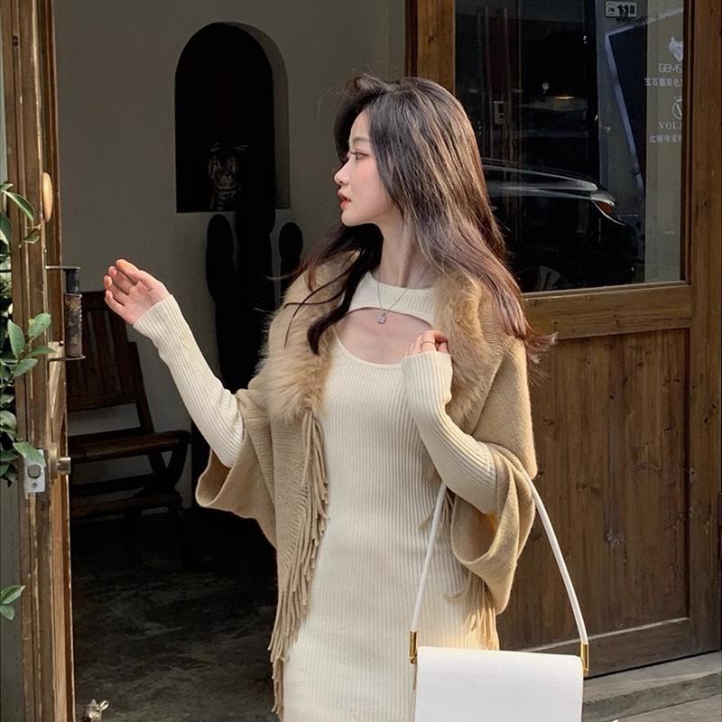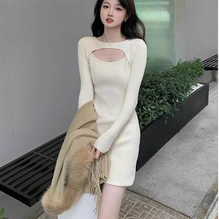 辣妹纯欲风设计感镂空针织连衣裙女春秋季小个子修身显瘦毛衣裙子
