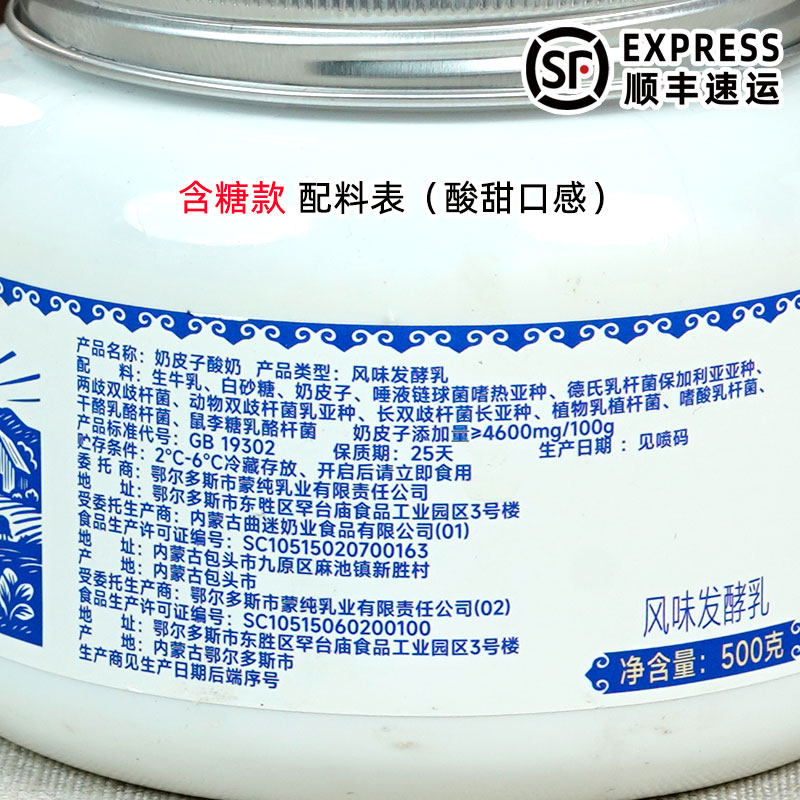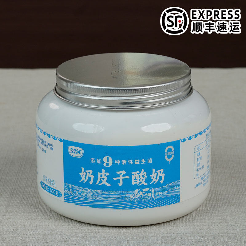 蒙纯无蔗糖厚奶皮子酸奶500g*2罐 9种益生菌酸牛奶内蒙古