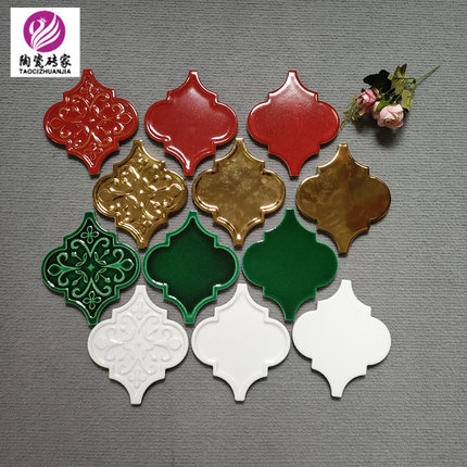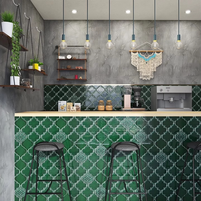 灯笼砖手工砖复古墨绿色卫生间浴室餐厅商场背景墙瓷砖白色花砖