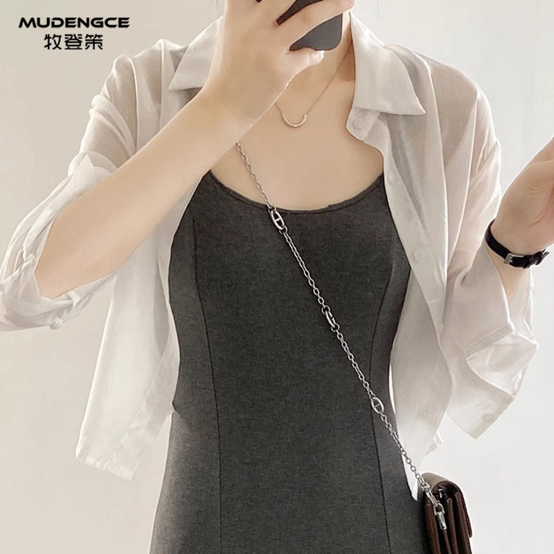 短款法式防晒衬衫女春夏新款薄纱小坎肩上衣配吊带裙子外搭开衫