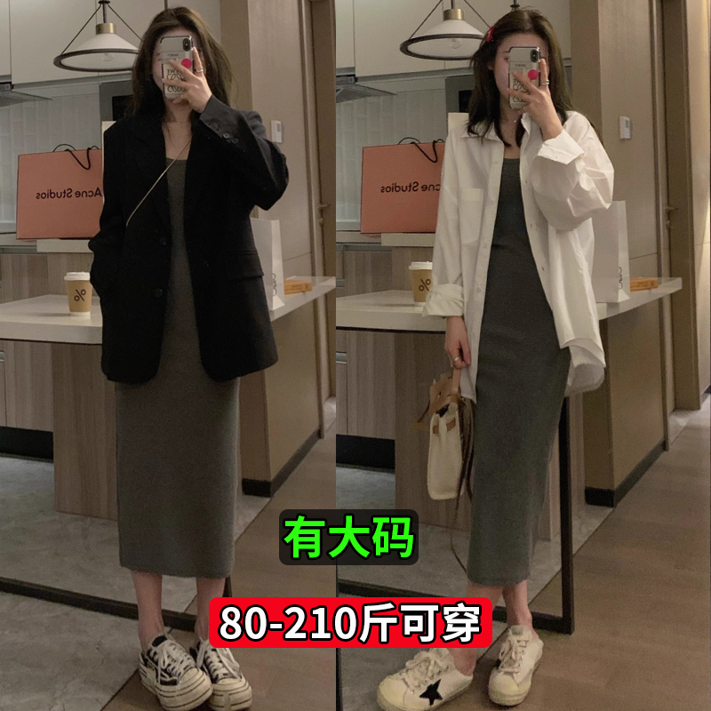 加大码胖mm吊带背心无袖连衣裙女春夏包臀裙圆领打底长裙子200斤