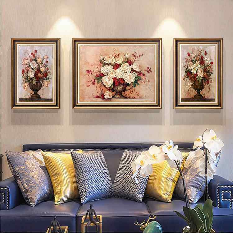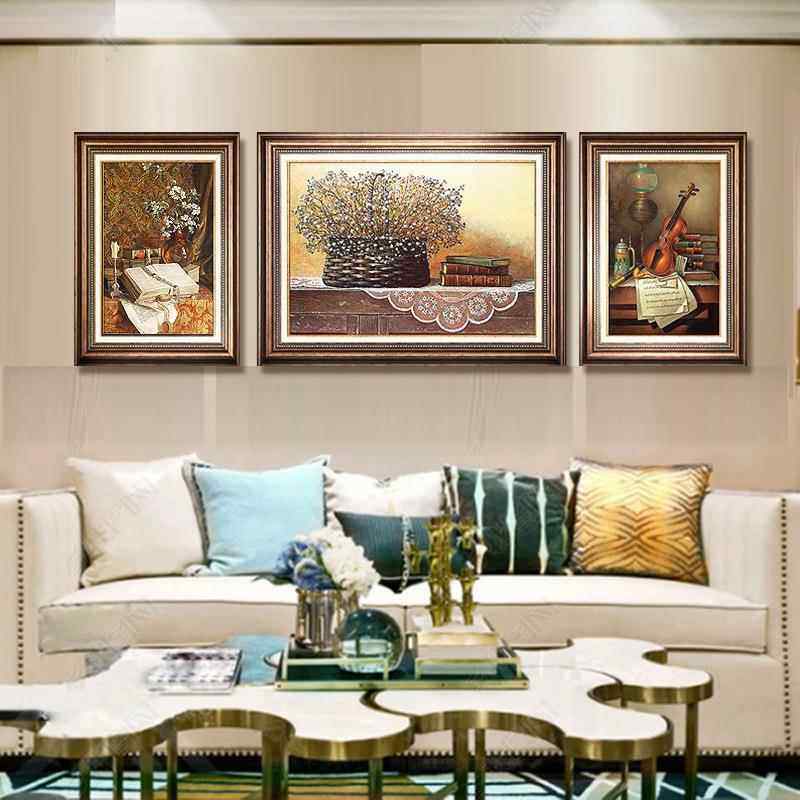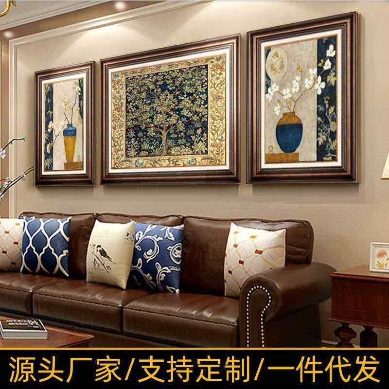 客厅装饰画沙发背景墙画欧式三联画轻奢餐厅美式玄关壁画简欧挂画