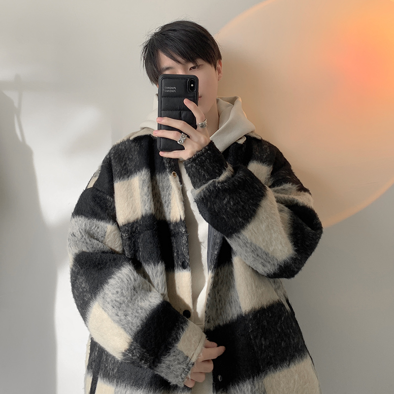 日系格子毛呢大衣男秋冬款新款呢子外套痞帅风衣409-5558-p78