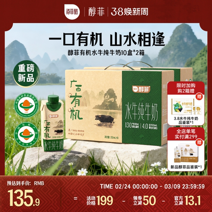 百菲酪醇菲有机水牛纯牛奶250ml*10瓶*2箱营养早餐奶学生