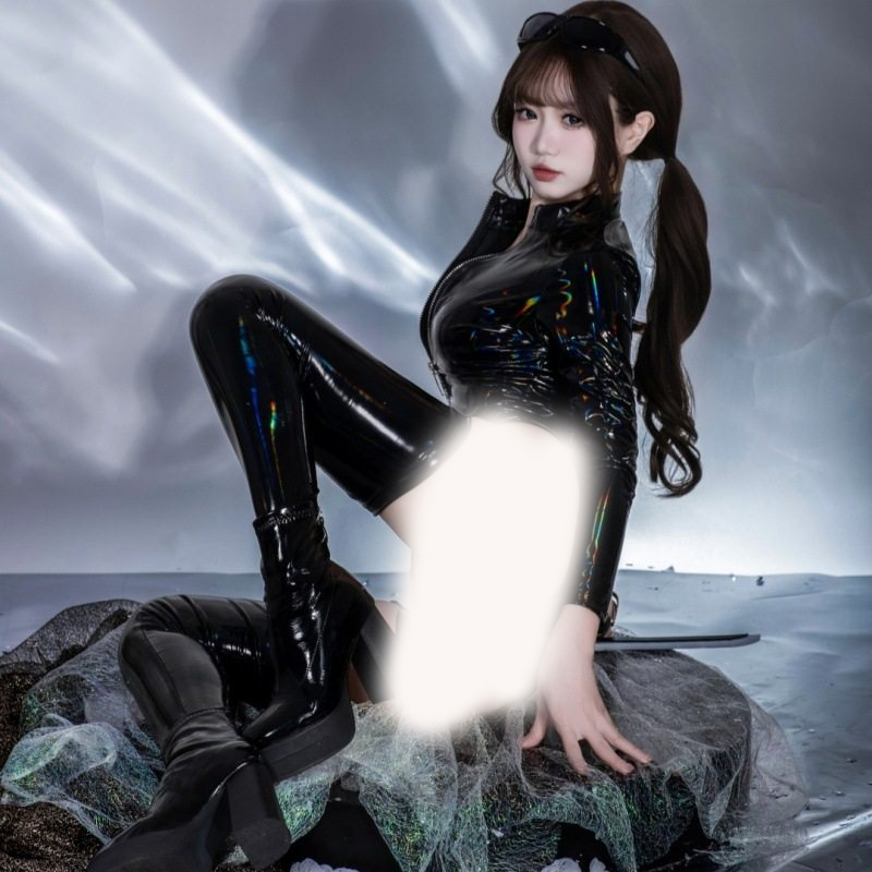 幻彩漆皮拉链长袖连体衣胶衣皮衣 忍者杀手特务女警COS服角色扮演