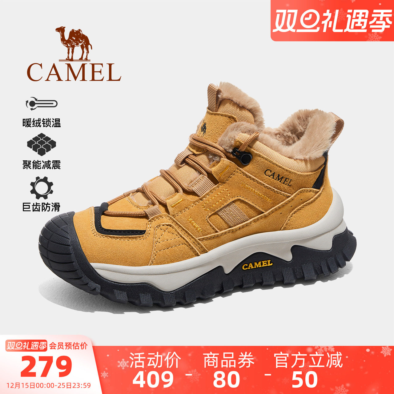 骆驼女鞋2025冬季新款户外加绒保暖棉鞋户外徒步登山鞋厚底短靴子