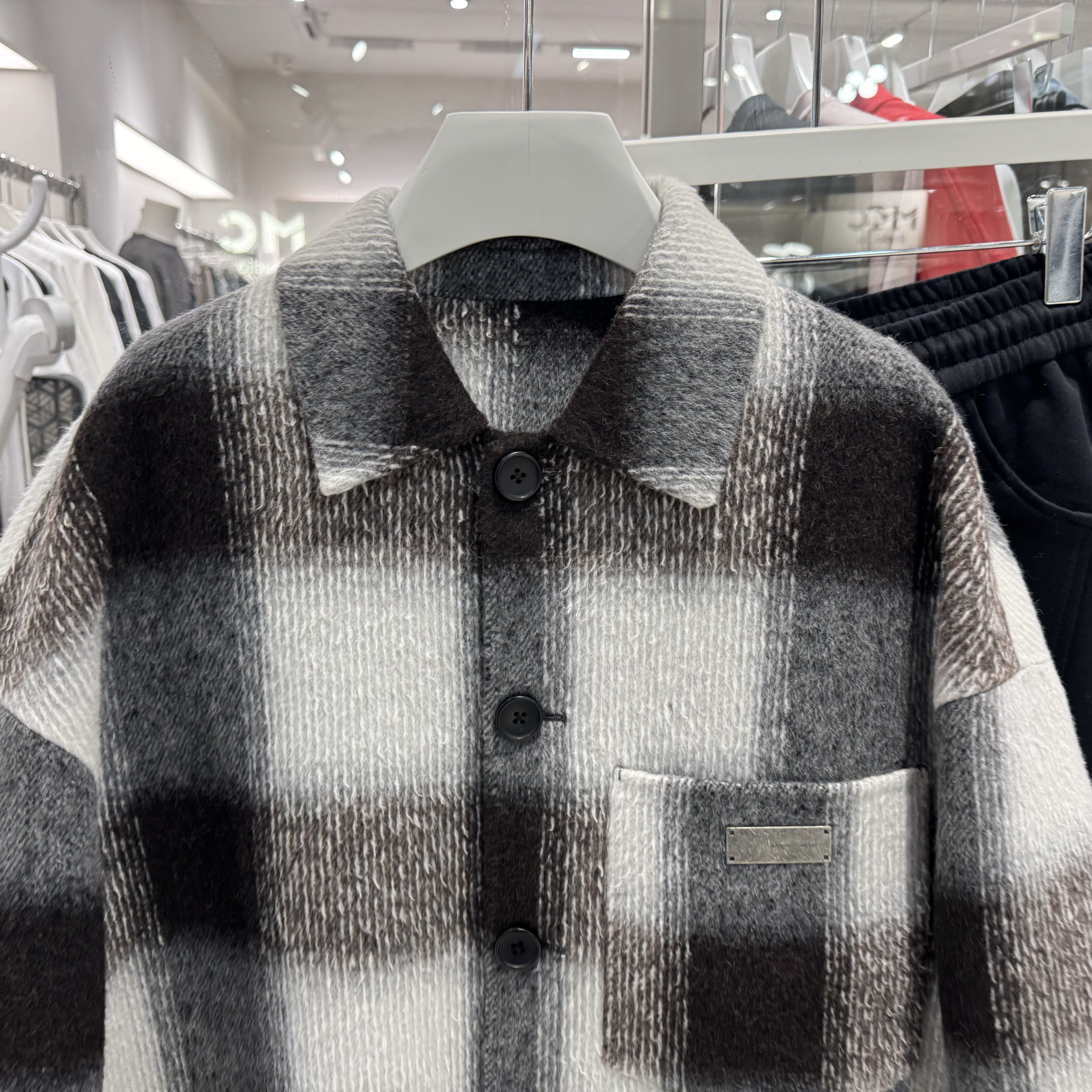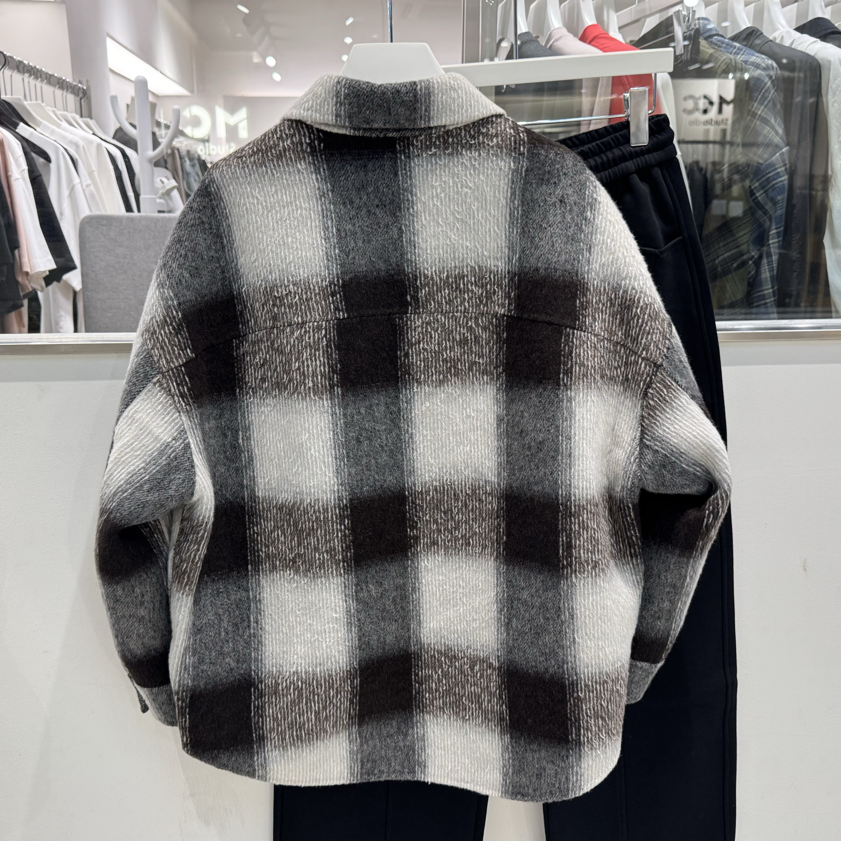 2025秋冬韩系格子双面羊毛呢大衣男时尚百搭痞帅宽松休闲呢子外套