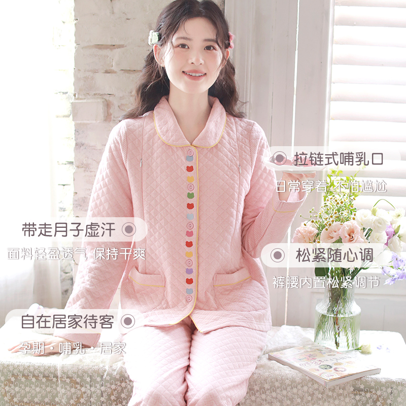 富朵秋冬季空气棉产后哺乳衣孕妇睡衣月子服孕产妇春秋夹棉家居服