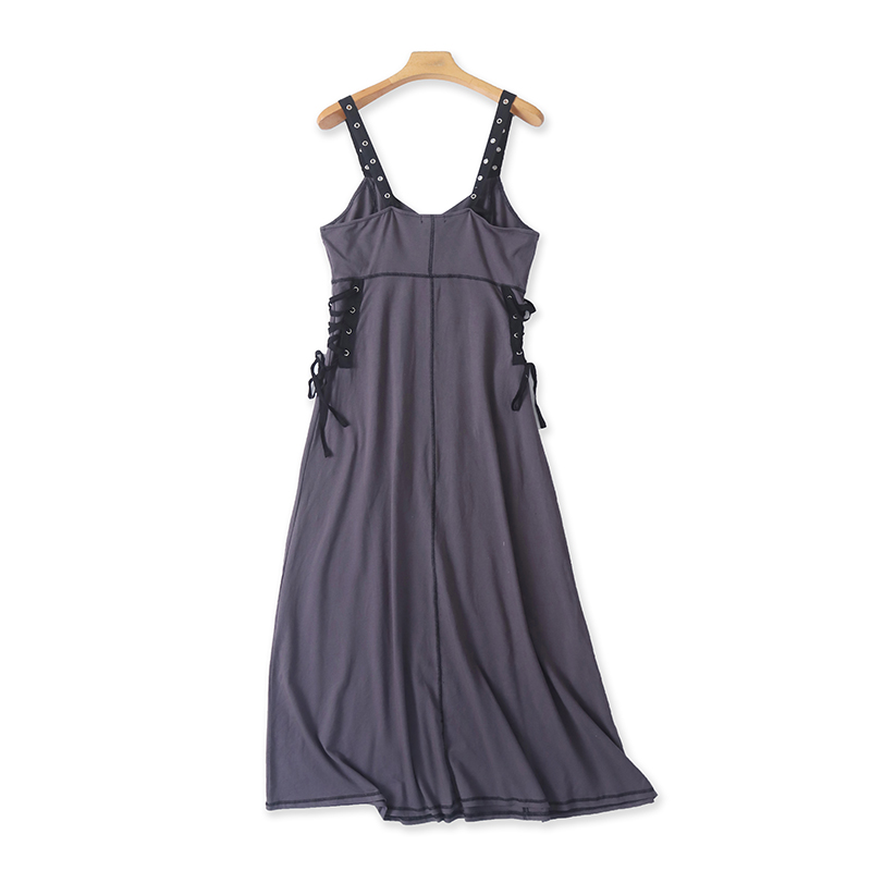 外贸背带连衣裙 夏季新款百搭时尚长款吊带裙女系带大摆裙子14044