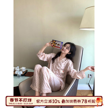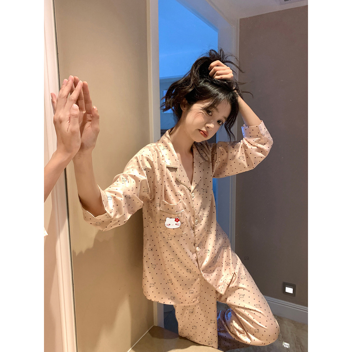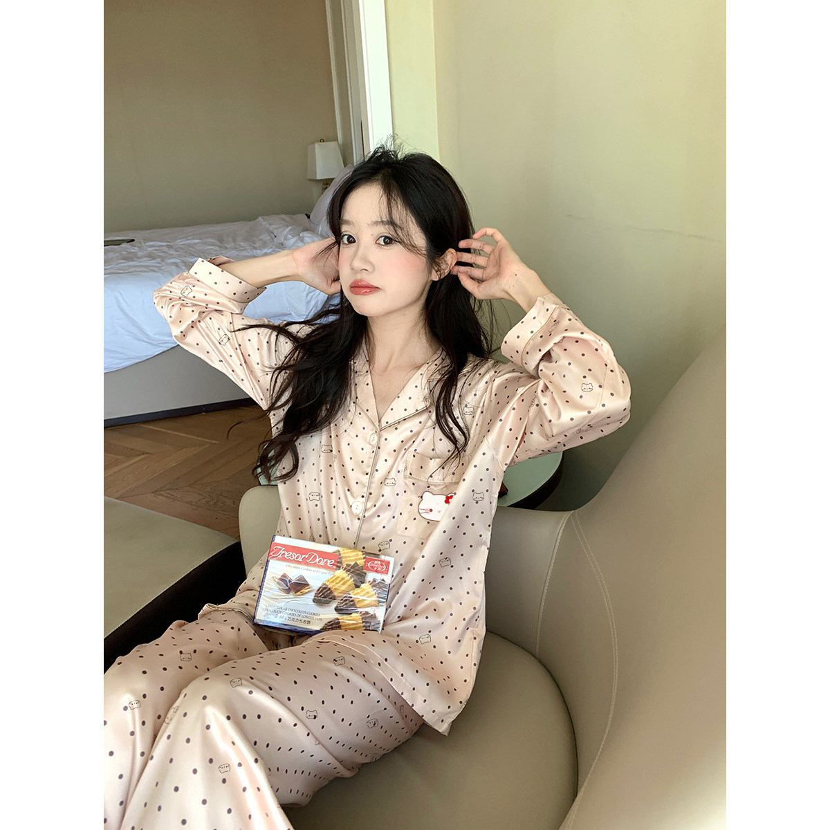 馨帮帮Homedress 秋季卡通波点冰丝睡衣女亲肤长袖长裤家居服套装