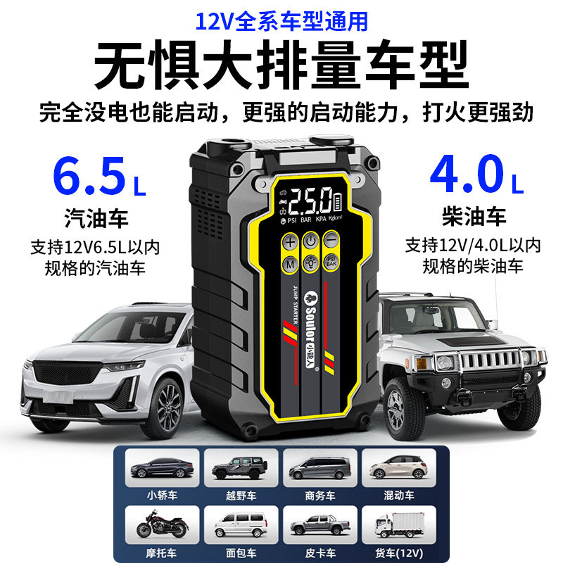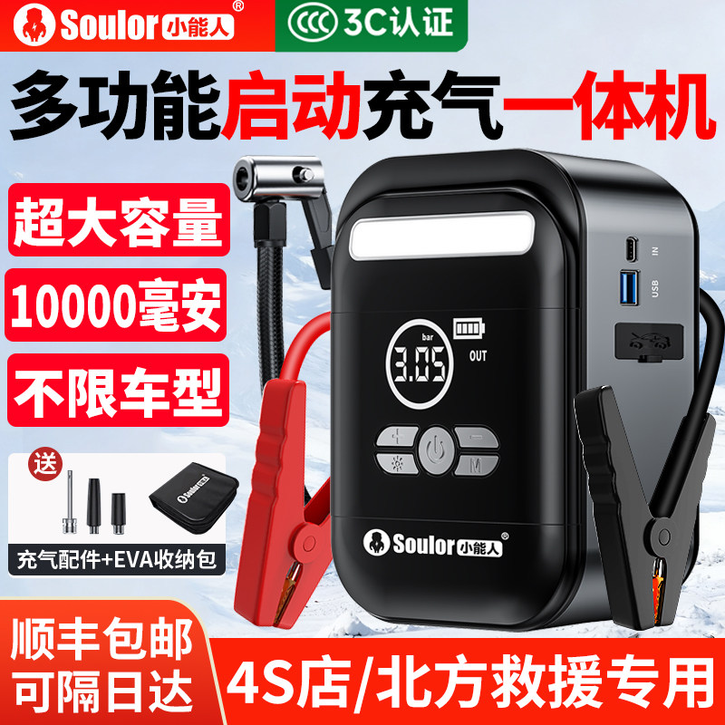 汽车应急启动电源车载充气泵一体机电瓶搭电宝紧急强启动打火神器
