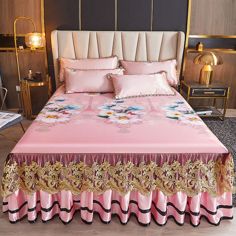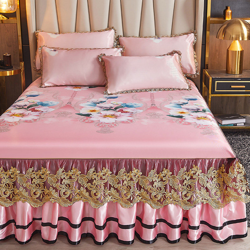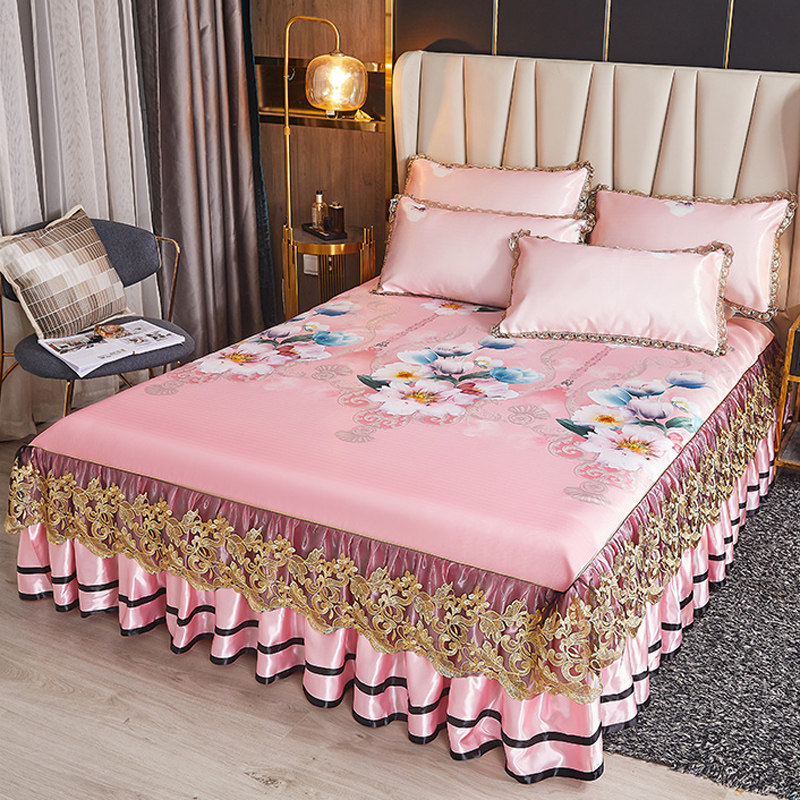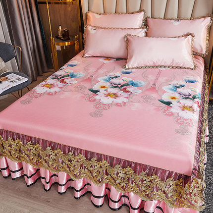 夏季冰丝凉席可水洗床裙款折叠夏天1.8m床罩双人空调软席子三件套