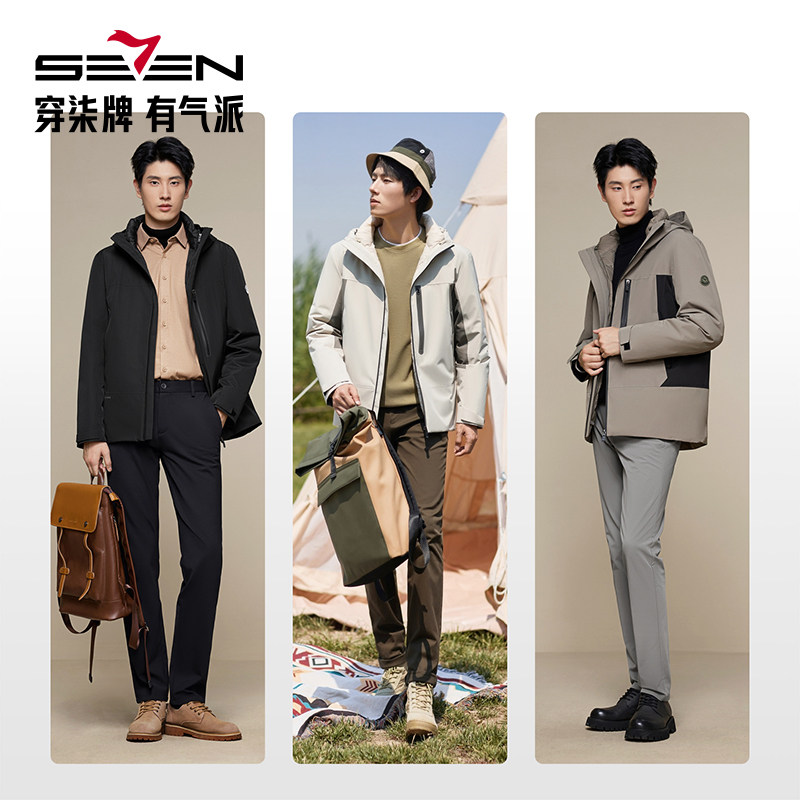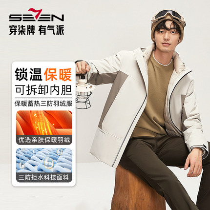 【拒水羽绒】柒牌连帽羽绒服男一衣三穿可脱卸内胆保暖防泼水外套