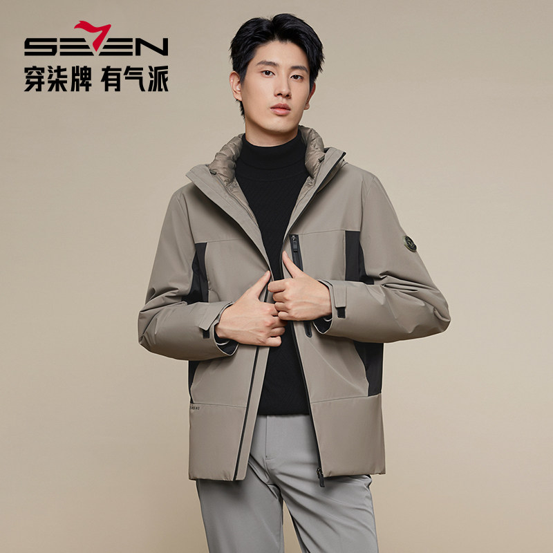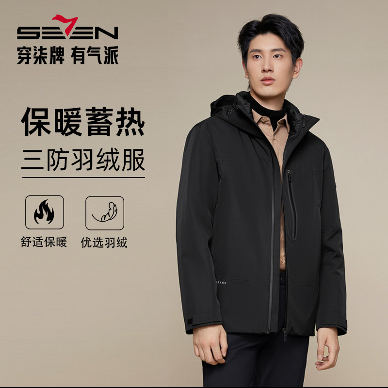 【拒水羽绒】柒牌连帽防水羽绒服