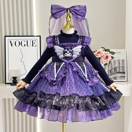 女童库洛米公主裙秋冬装2025新款洋气洛丽塔蓬蓬裙儿童毛衣连衣裙