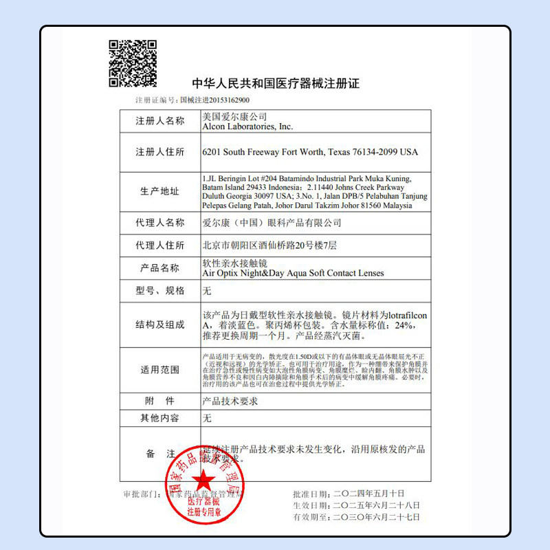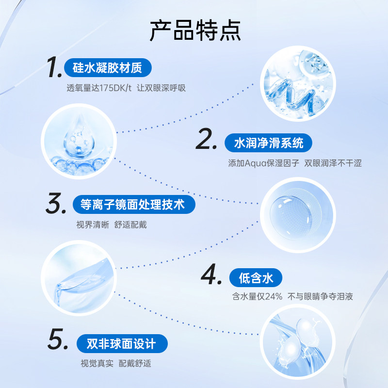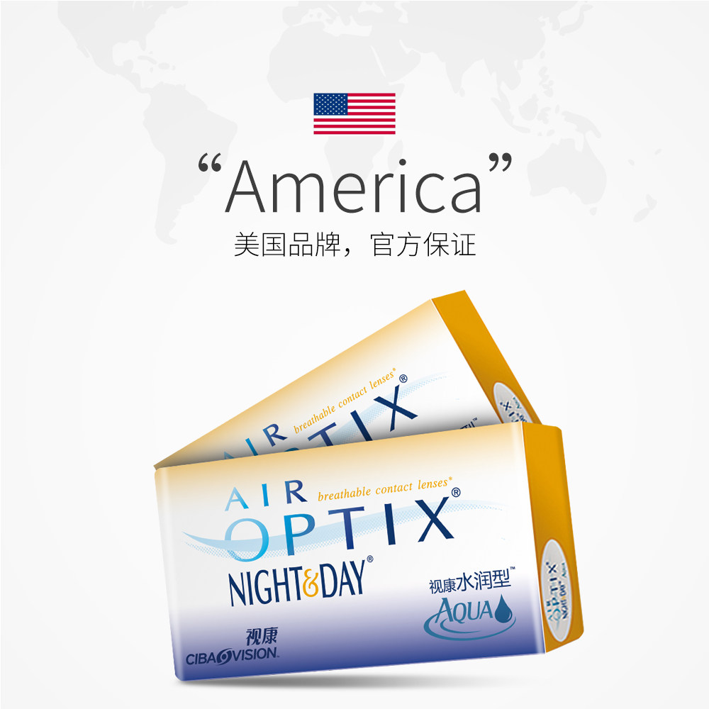 【自营】爱尔康视康水润日夜型月抛3片隐形近视眼镜硅水凝胶透氧