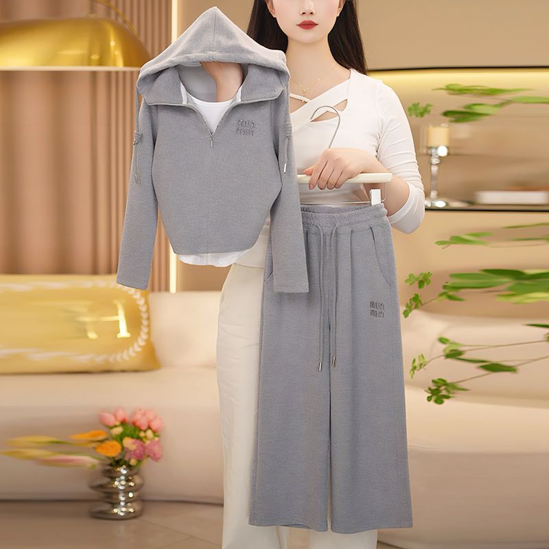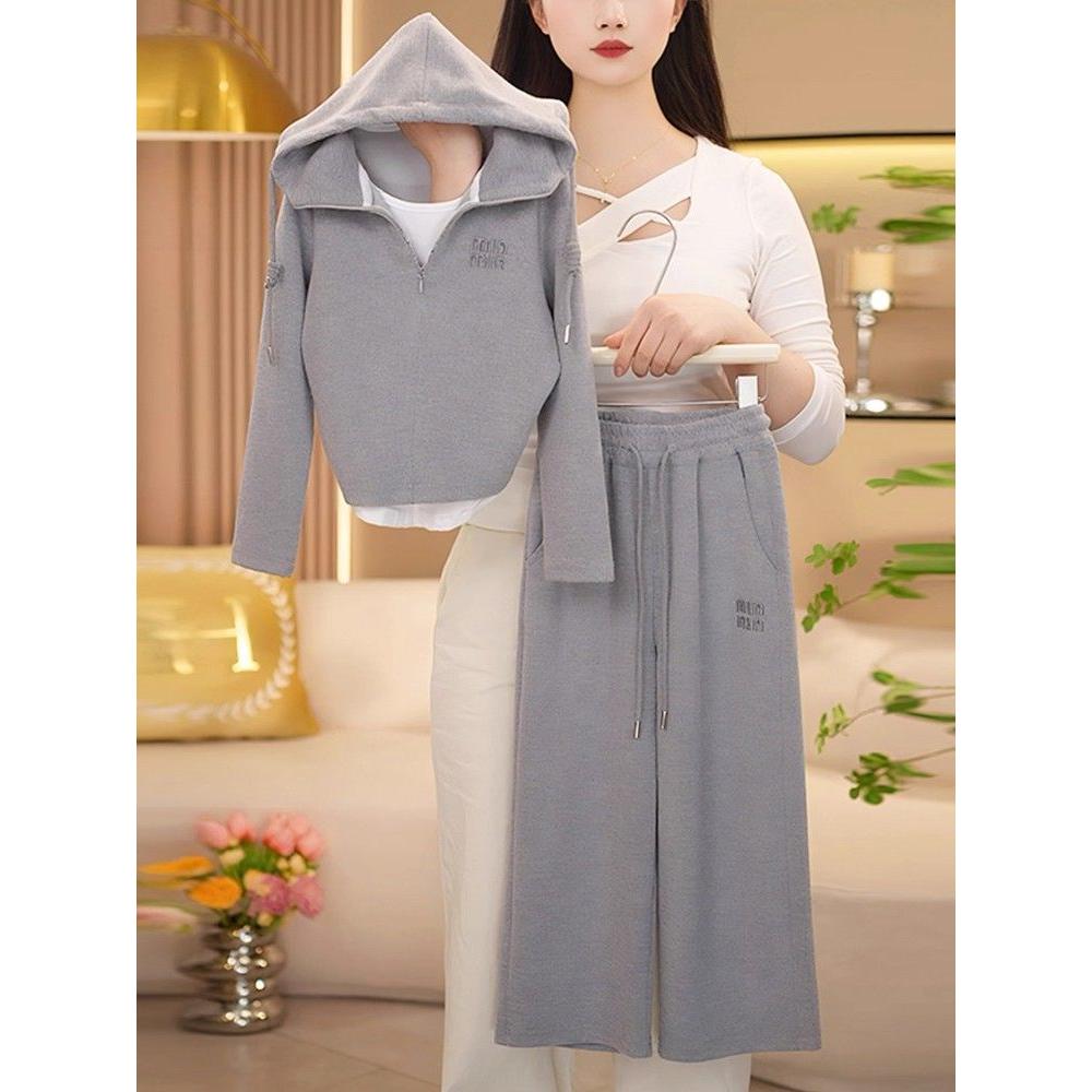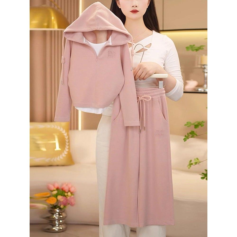 女童刺绣连帽套装春秋百搭新款儿童休闲春装女孩阔腿裤两件套洋气