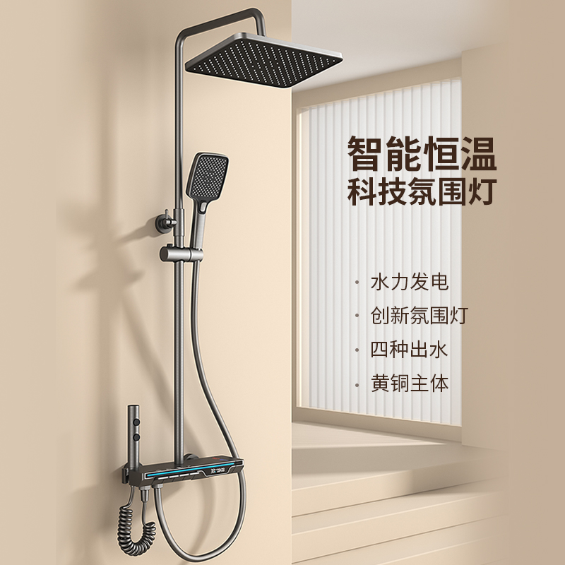 德国卫浴枪灰淋浴花洒套装家用浴室洗澡沐浴卫生间全铜淋雨花洒头