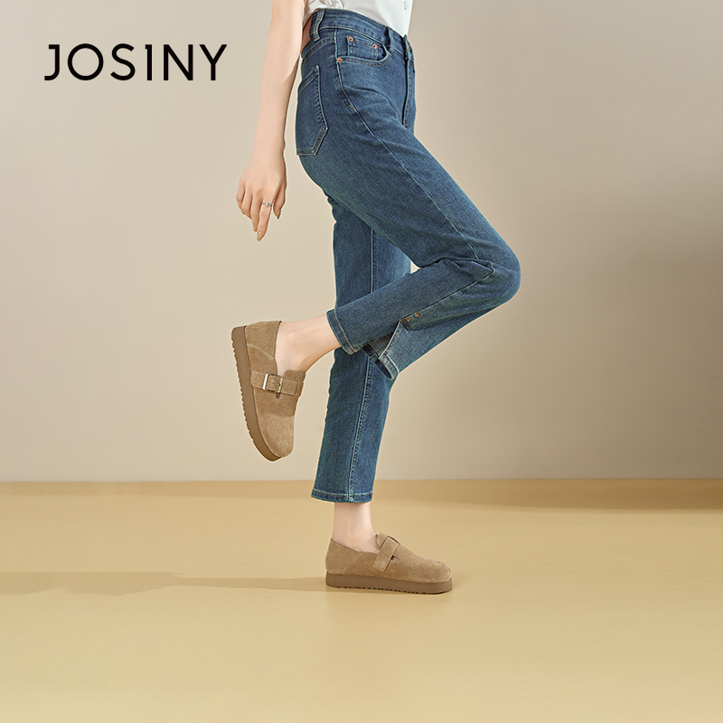 卓诗尼2025春秋新款厚底女鞋勃肯鞋休闲圆头单鞋子豆豆鞋真皮牛皮