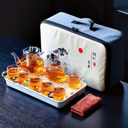 耐热玻璃功夫茶具便携式旅行包家用茶盘礼品套装户外活动车载茶具