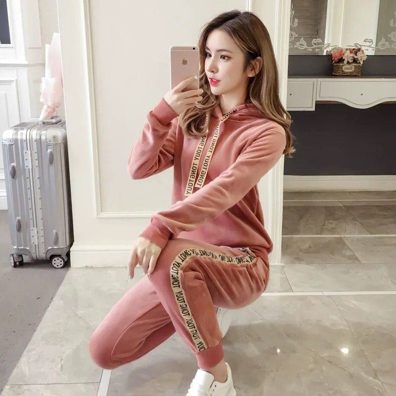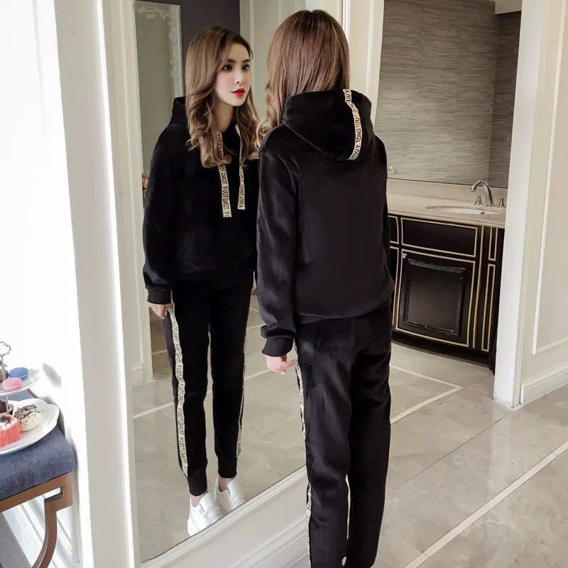 金丝绒套装女秋冬新款双面绒加绒加厚卫衣卫裤休闲时尚运动两件套