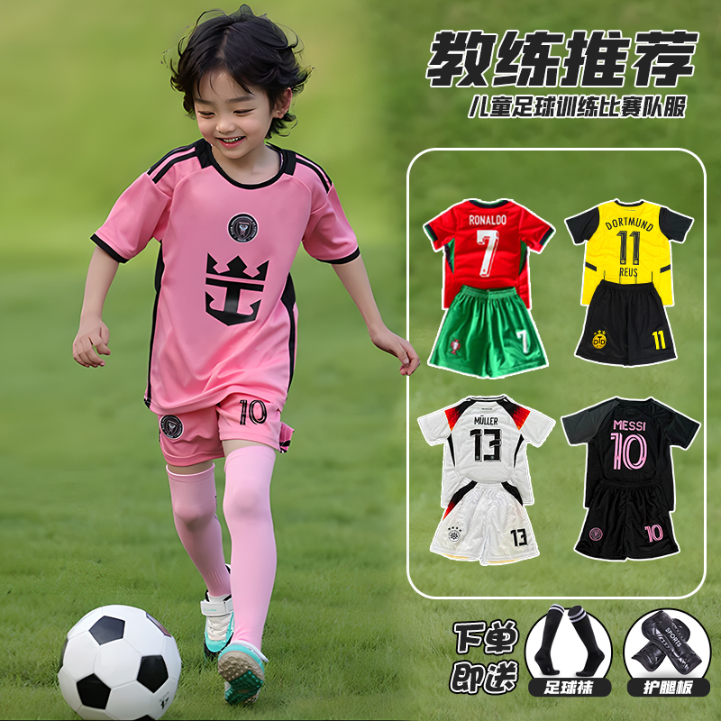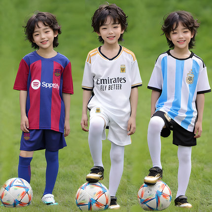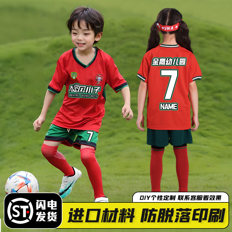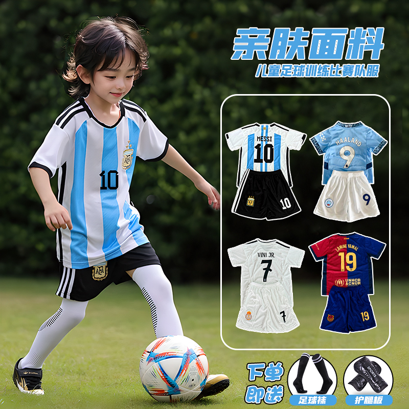 儿童足球服阿根廷梅西球衣10号葡萄牙C罗小学生男女训练队服定制