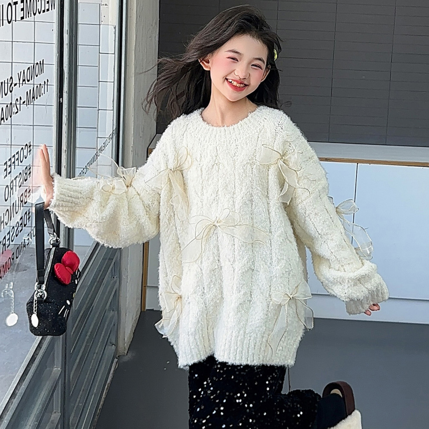 女童毛衣加厚秋冬季洋气爆款网红儿童洋气套头针织衫中大童上衣潮